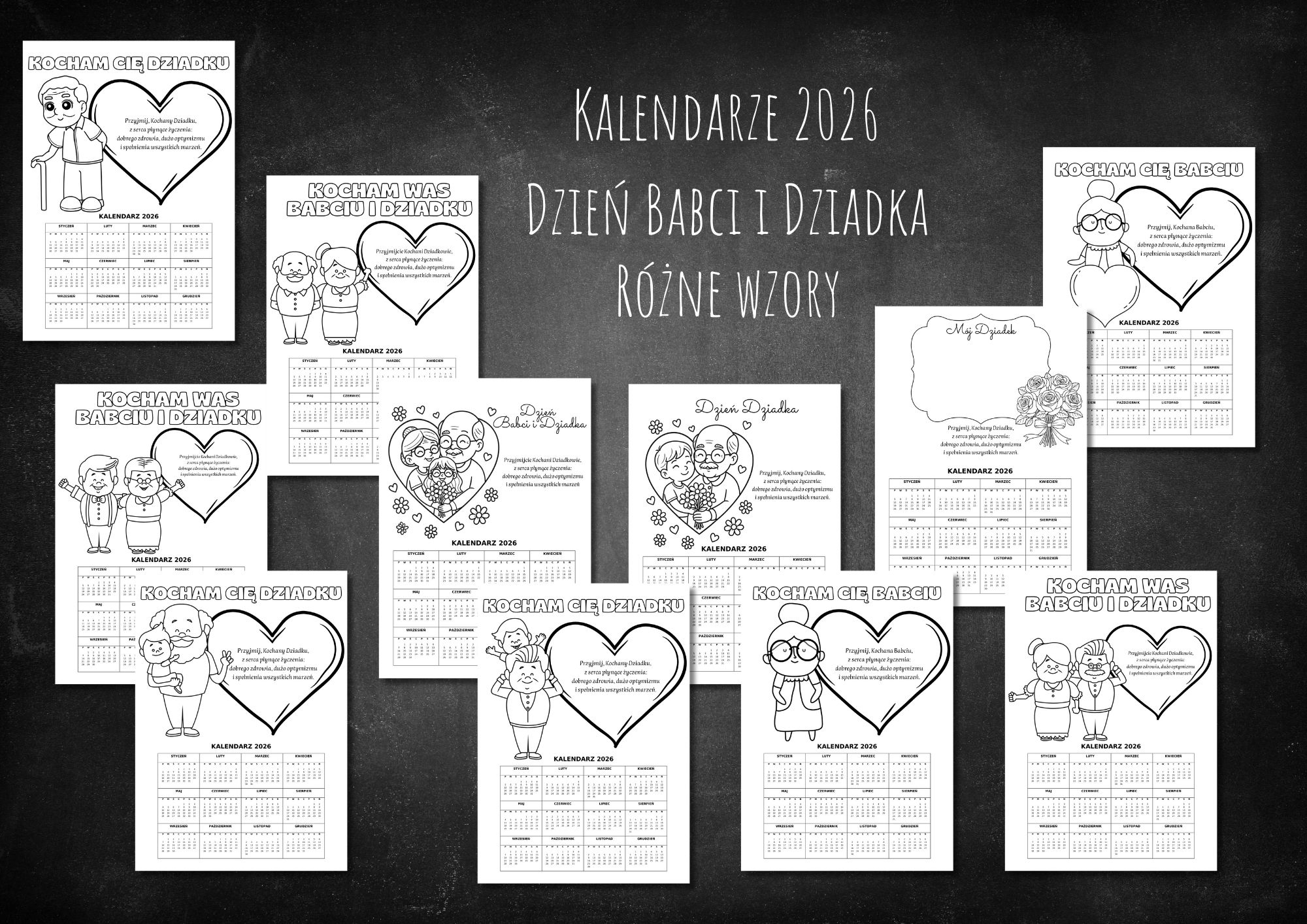 DZIEŃ BABCI I DZIADKA - KALENDARZ 2026 rok - różne wzory