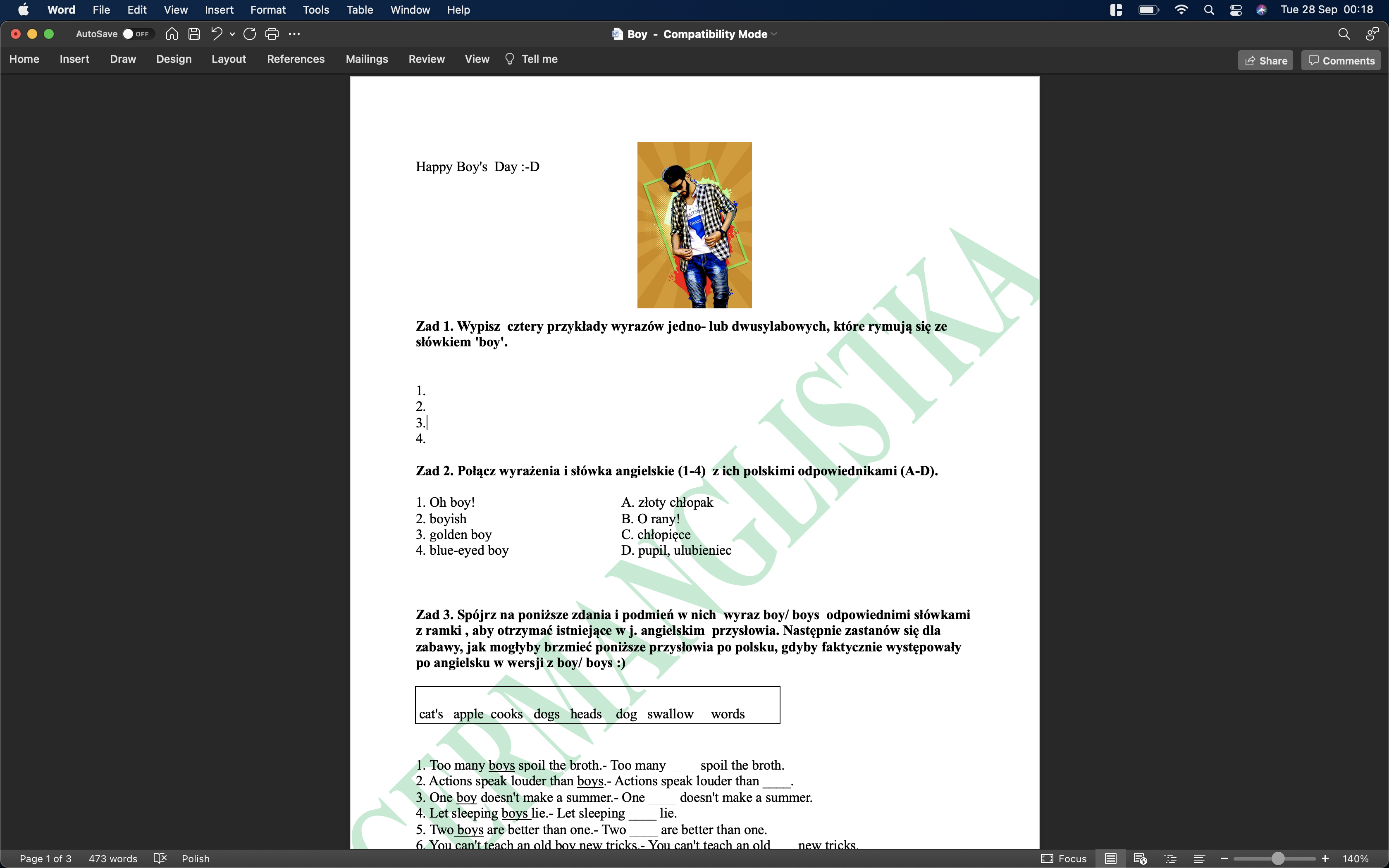 Dzień chłopaka - Boy's Day- ćwiczenia związane z chłopakami :)