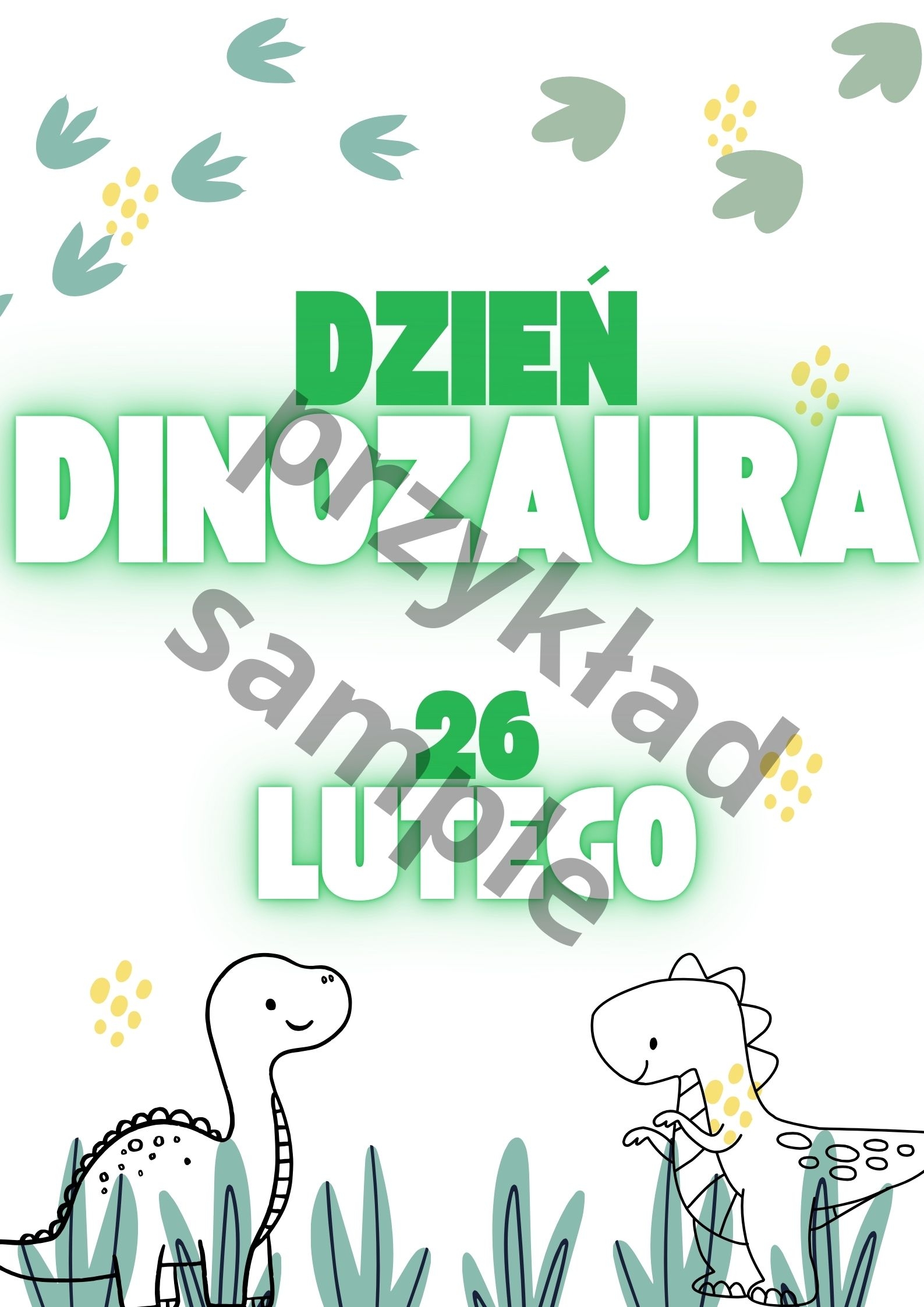 Zestaw na Dzień Dinozaura. Zawiera: plakat, girlandę, cytat oraz pustą kartkę, na której dzieci mogą narysować swojego ulubionego dinozaura.