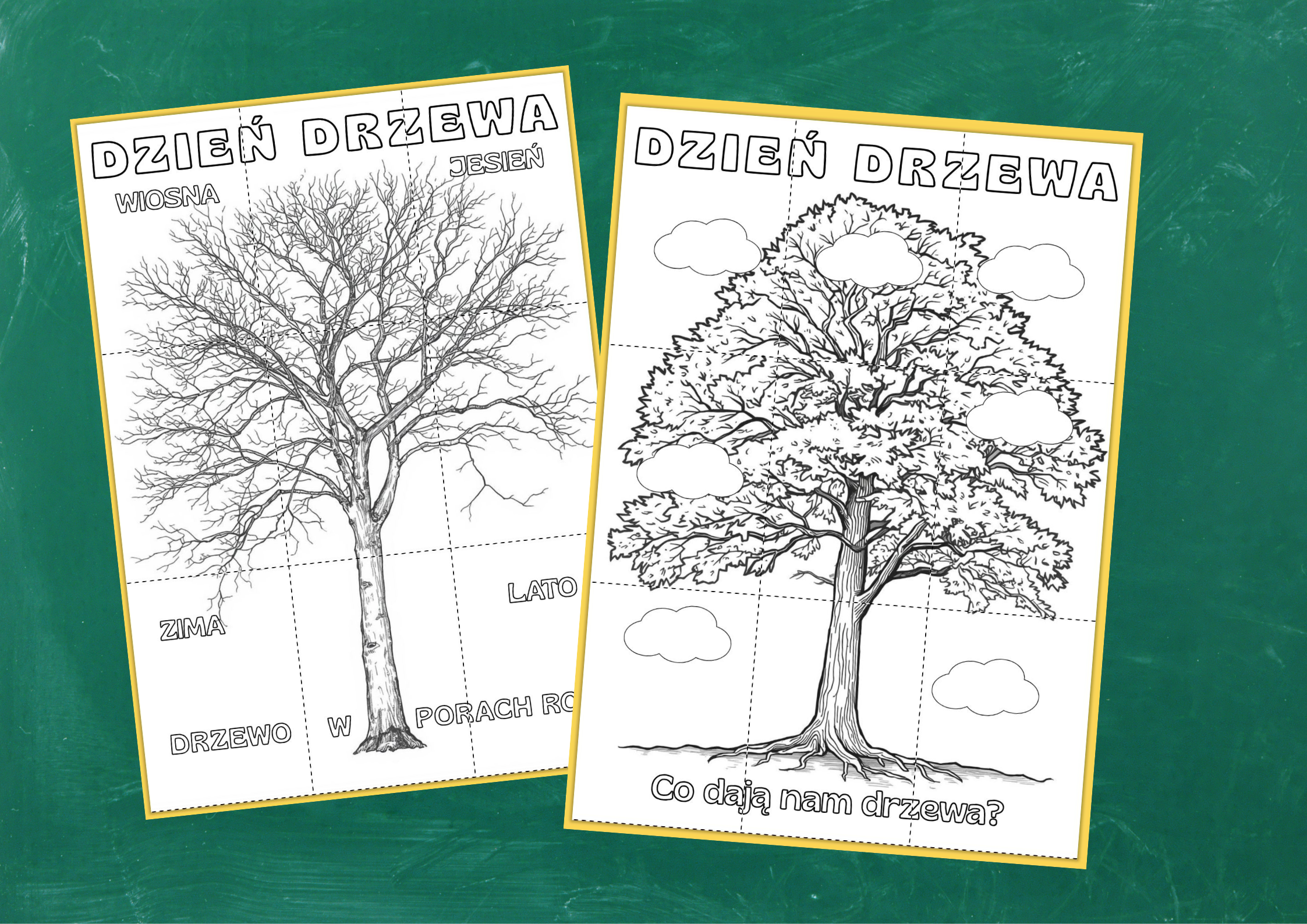 Plik zawiera dwie kolorowanki. Każda podzielona na 9 kartek A4. Pierwsza ma służyć pokolorowaniu korony drzewa zgodnie z porami roku, druga wpisaniu w chmurki po pogadance z dziećmi jakie korzyści przynoszą nam drzewa.