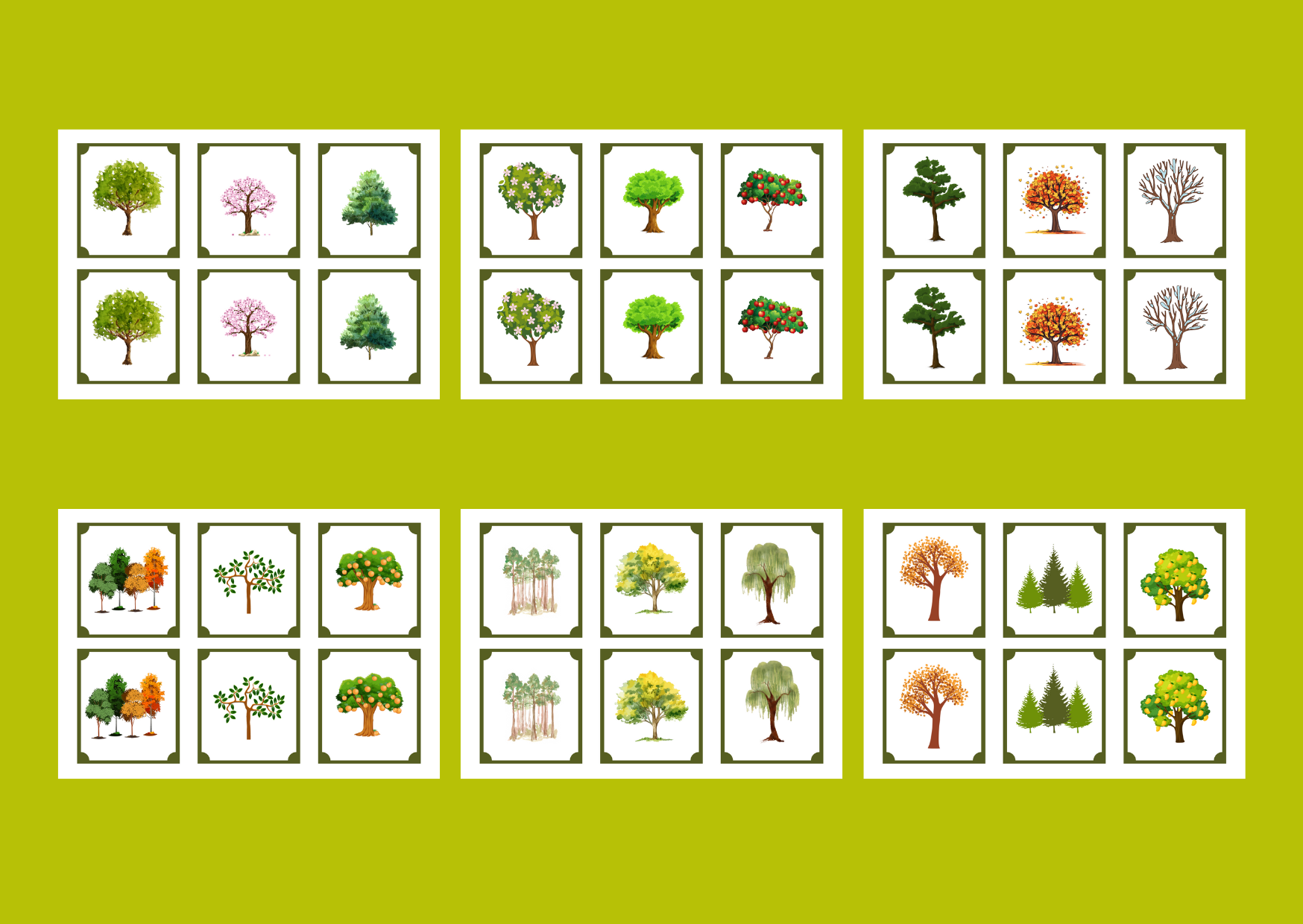 Gra memory uczy dzieci skupienia i koncentracji. Proponuję memory z ilustracjami związanymi z Dniem Drzewa (6 stron, na każdej po 6 ikonek). Po wycięciu materiał można zalaminować, aby dłużej służył.