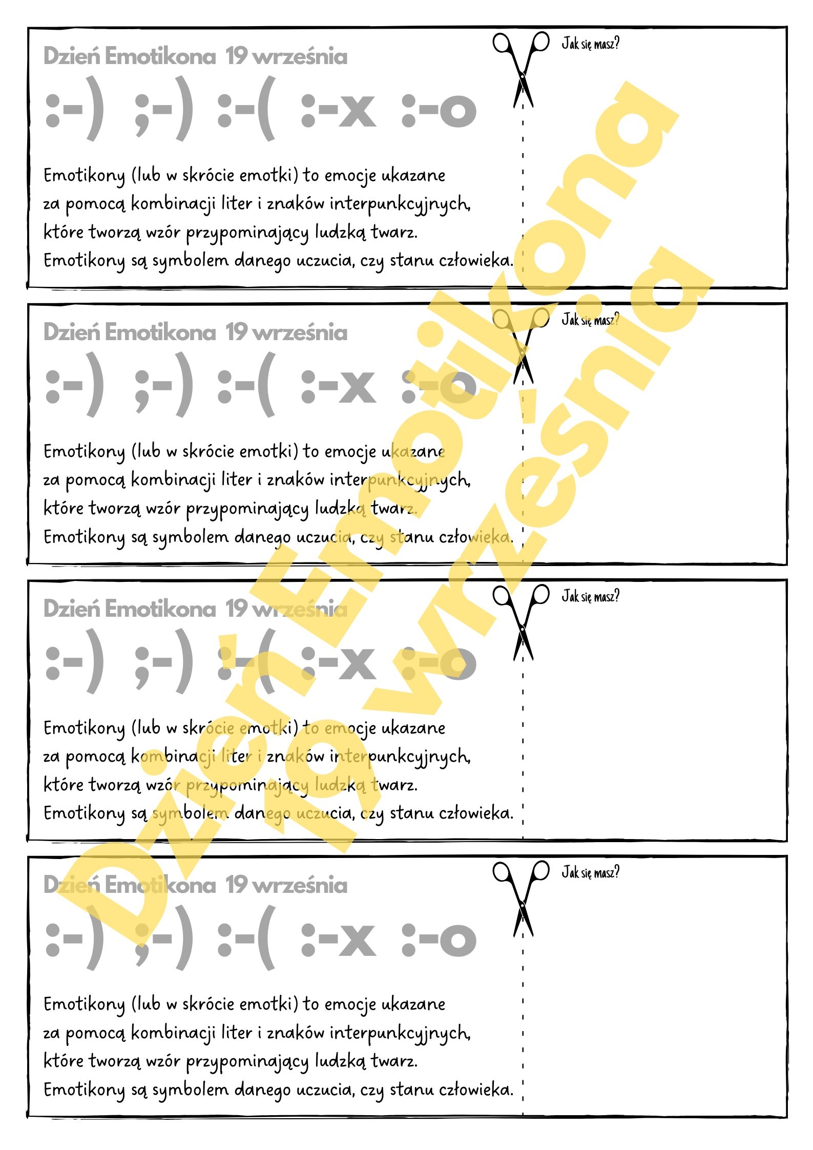 Wlepka do zeszytu lub zakładka. Dzień Emotikona - 19.09.