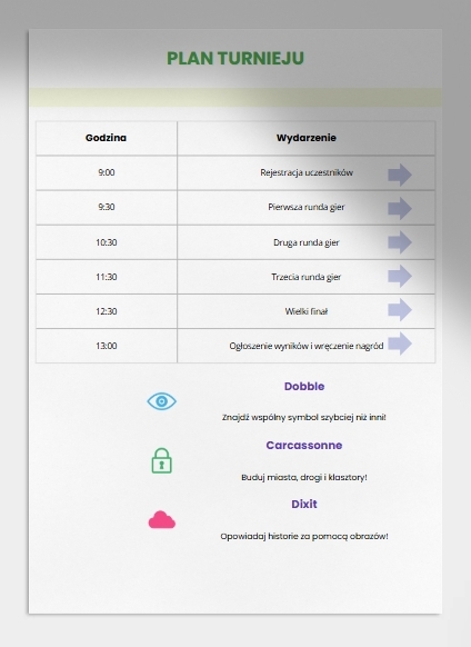 Z naszym profesjonalnie przygotowanym zestawem materiałów "Dzień Gier Planszowych" zorganizujesz turniej, który zachwyci uczniów, nauczycieli i rodziców! 🎉