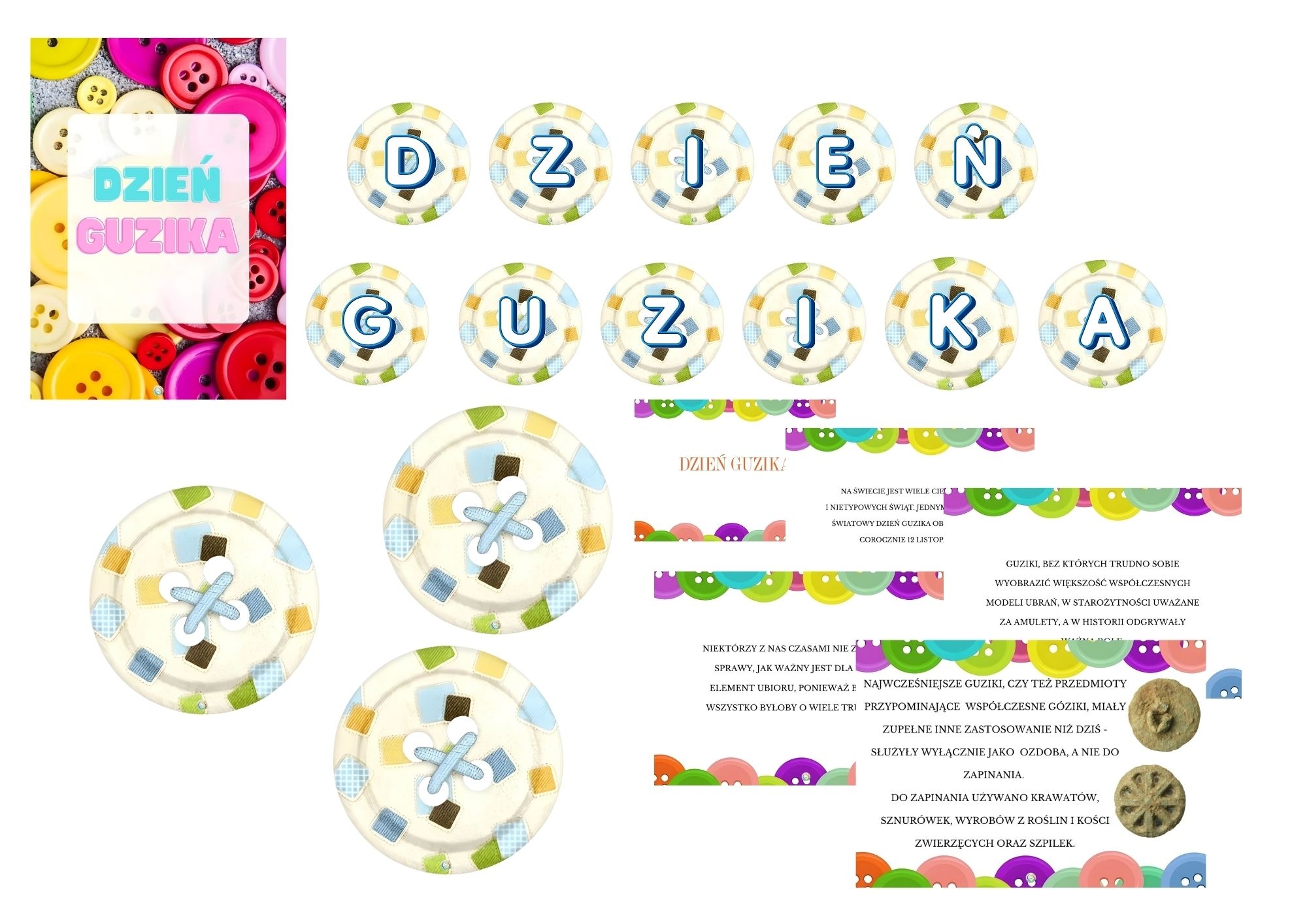 Gotowy zestaw na Dzień Guzika, idealny do przedszkola i zajęć tematycznych. W środku znajdziesz karty pracy z motywem guzika, kolorowanki, dekoracyjne girlandy oraz krótką historię guzika napisaną z myślą o dzieciach. Materiał rozwija kreatywność, motorykę małą i świetnie urozmaica obchody tego nietypowego święta. Wystarczy wydrukować i korzystać.