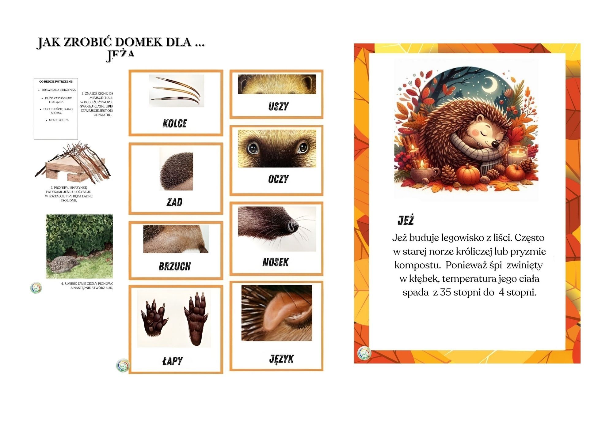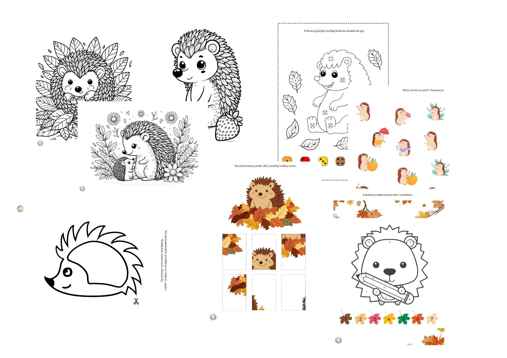 • 🧠 Karty pracy tematyczne — rozwijające zadania z jeżem w roli głównej