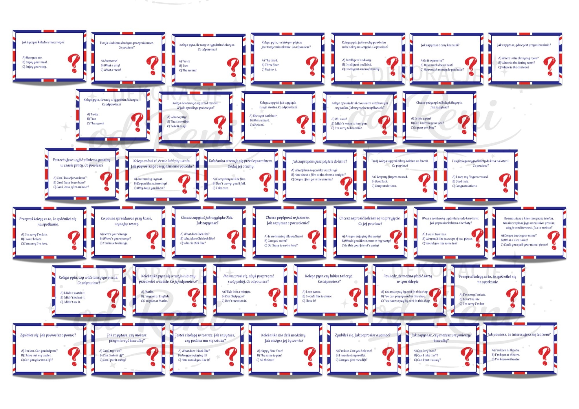 Praktyczne zwroty i sytuacje komunikacyjne przedstawione w przystępnej formie — świetne jako element edukacyjny na gazetce.
