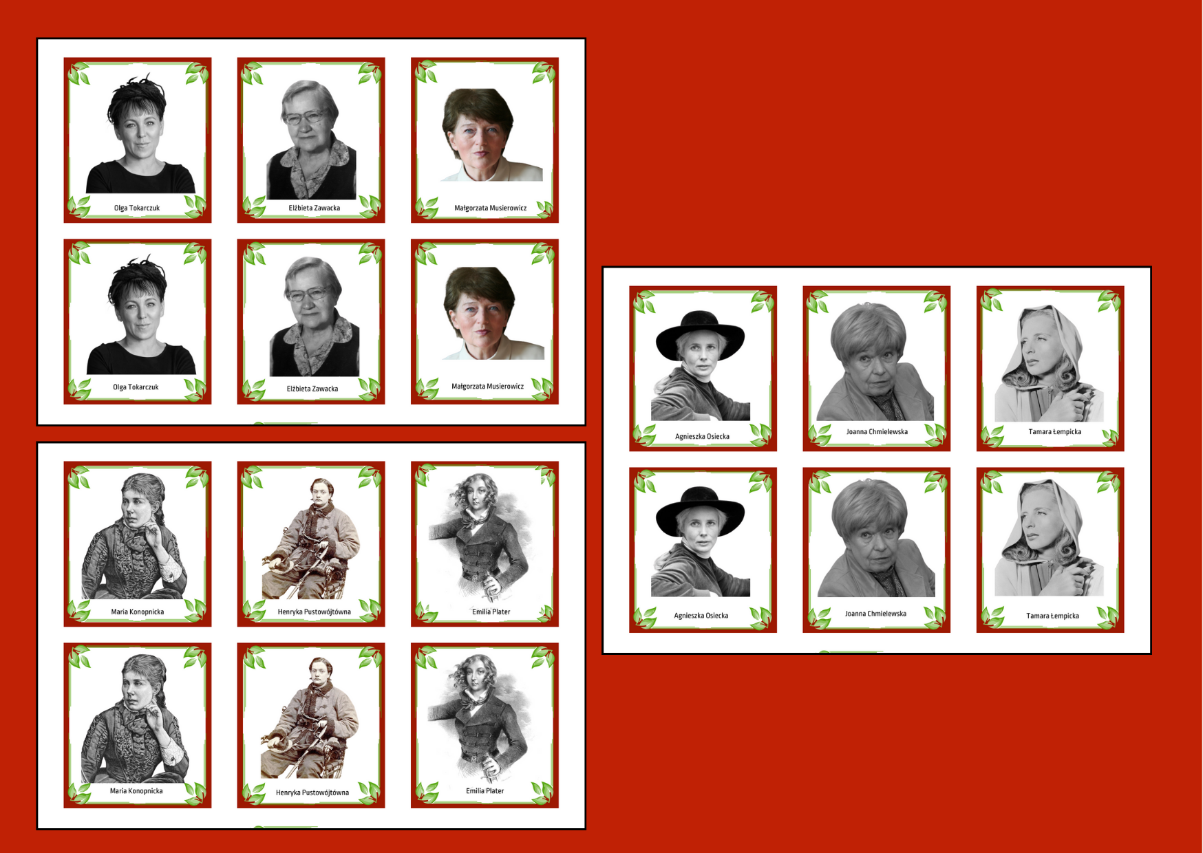 Gra memory uczy skupienia i koncentracji. Proponuję memory ze zdjęciami sławnych Polek (6 stron, na każdej po 6 ikonek). Po wycięciu materiał można zalaminować, aby dłużej służył.