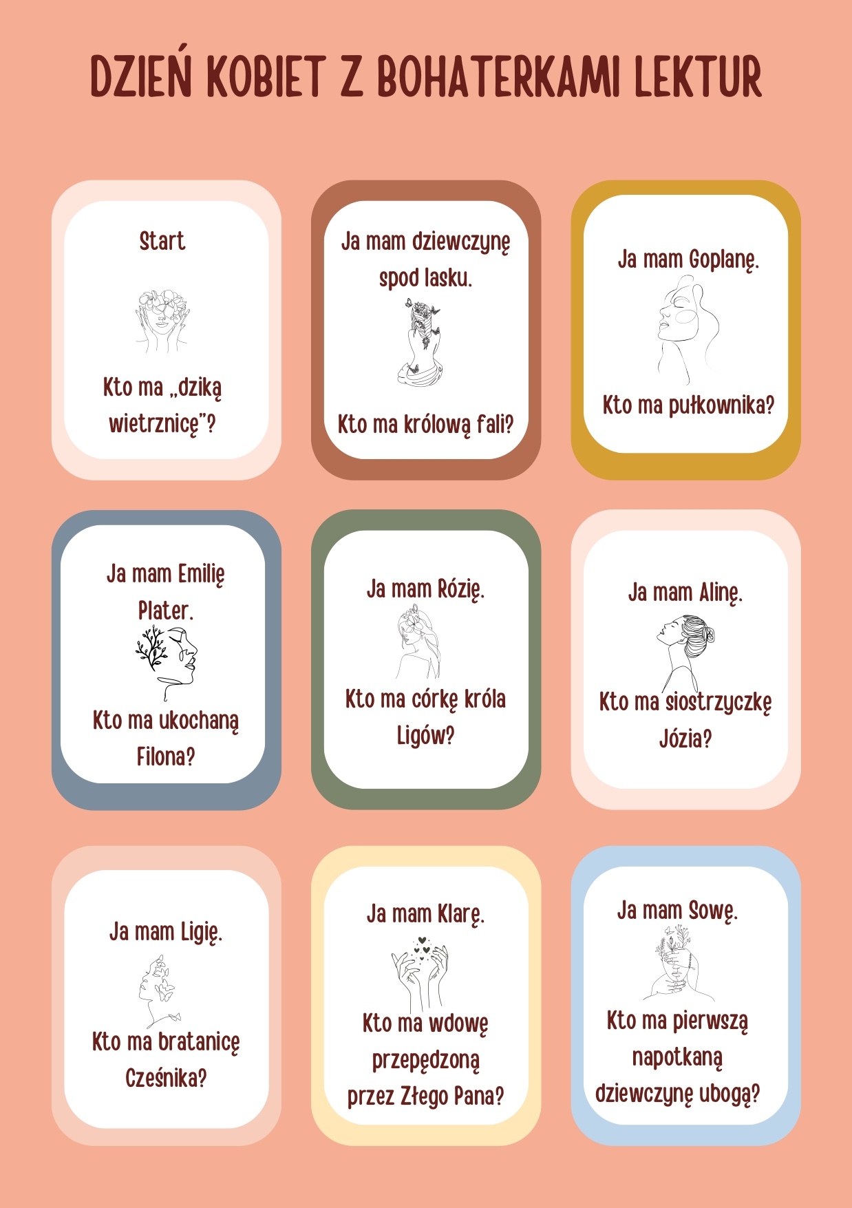 Gra jest propozycją powtórzenia lektur z klas 7-8 przy okazji obchodów Dnia Kobiet.