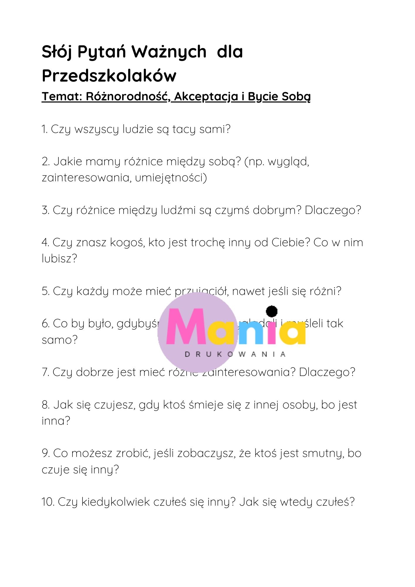 ✅ Stół pytan ważnych, który pomoże w dyskusji na temat różnorodności I akceptacji