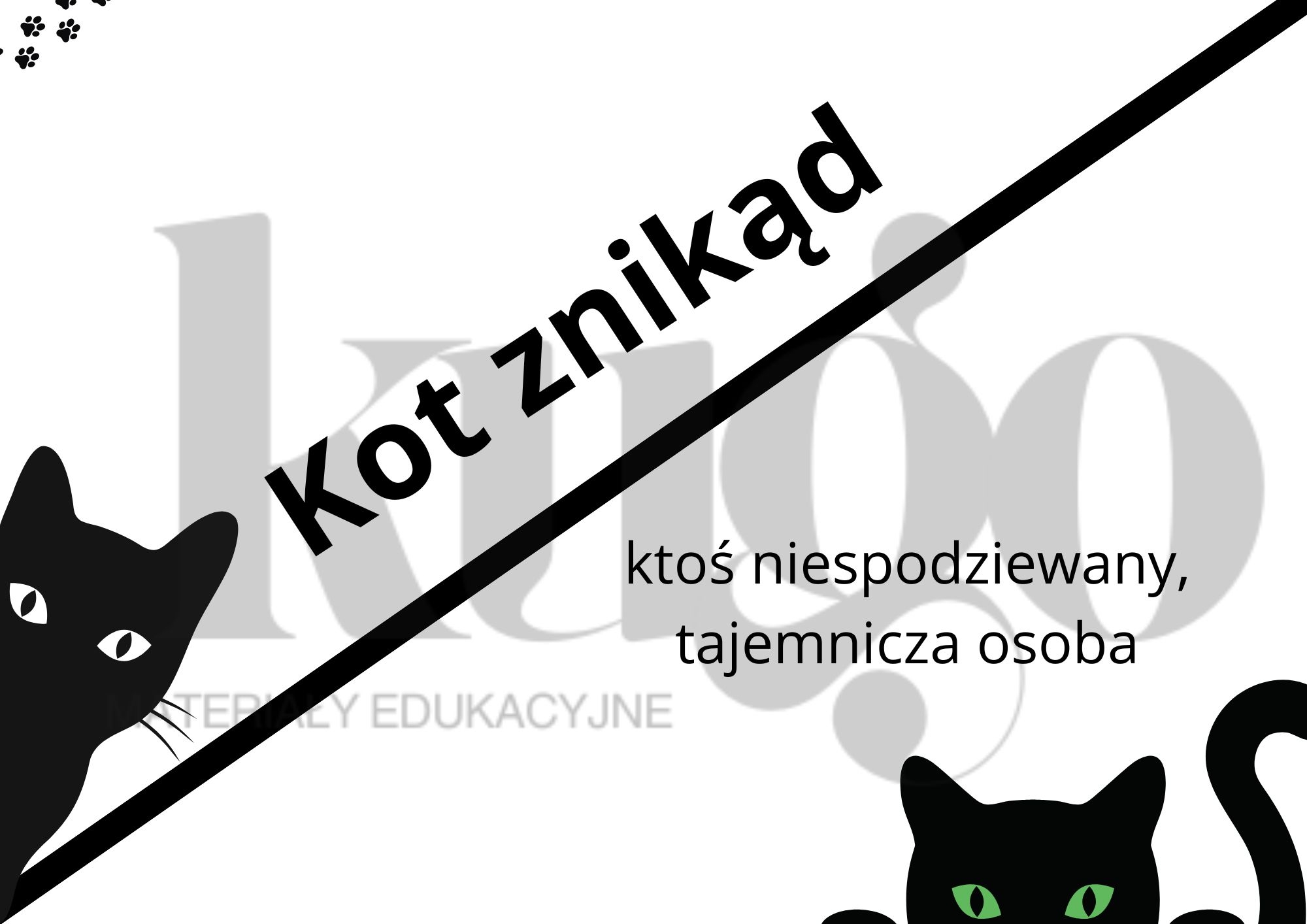 Zestaw 25 kart na Dzień Kota, można wykorzystać jako gazetkę ścienną lub wykorzystać jako zabawę w grupach. Po przecięciu wzdłuż linii otrzymujemy związki frazeologiczne wraz z ich wyjaśnieniem.
