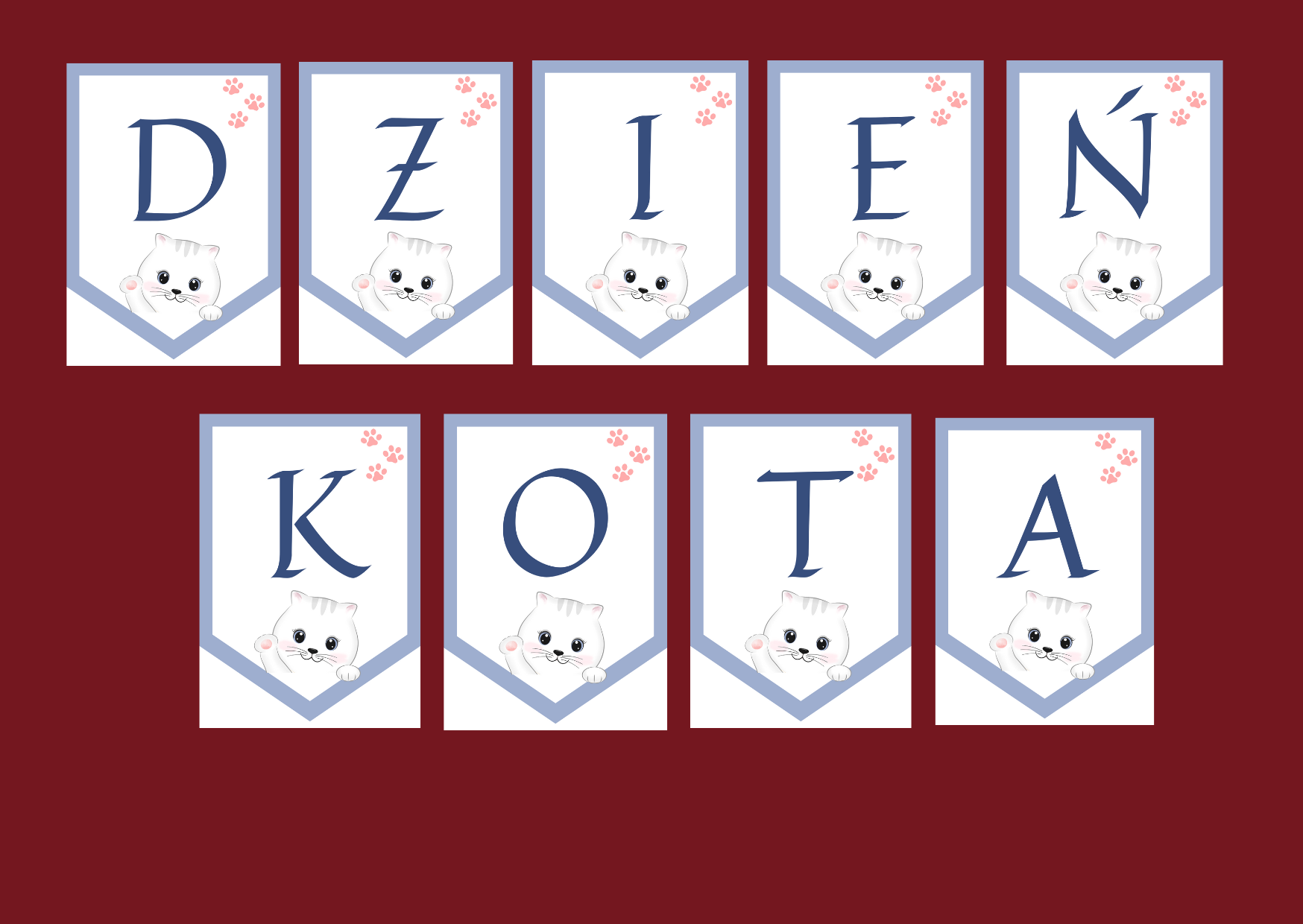 Materiał w formie girlandy pt. „DZIEŃ KOTA”; format A4 pdf, w dwóch wersjach