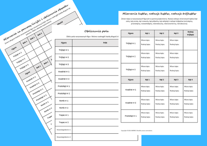 Projekt matematyczny "Dzień Kropki - Trójkąty i Czworokąty" jest świetnym pomysłem do wykorzystania z okazji Dnia Kropki (wszystko zaczyna się od rysowania kropek). Dla każdej grupy wiekowej – w zależności od wybranej wersji. Skorzystaj z tej kolorowej lekcji, aby zaangażować uczniów i poćwiczyć rysowanie figur, mierzenie za pomocą linijki, obliczanie pola i obwodu, mierzenie kątów oraz powtórzyć rodzaje kątów i trójkątów. Ten produkt zawiera wersję PDF i DOC do wydrukowania: instrukcję rysowania tego projektu (trójkąt, kwadrat, prostokąt, romb, trapez, równoległobok) + opcjonalne karty pracy, w tym: * mierzenie za pomocą linijki, * obliczanie obwodów trójkątów i czworokątów, * obliczanie pól trójkątów i czworokątów, * mierzenie kątów, * rodzaje kątów (kąt ostry, kąt prosty, kąt rozwarty, kąt półpełny, kąt wklęsły), * rodzaje trójkątów (ostrokątny, prostokątny, rozwartokątny, równoboczny, równoramienny, różnoboczny).