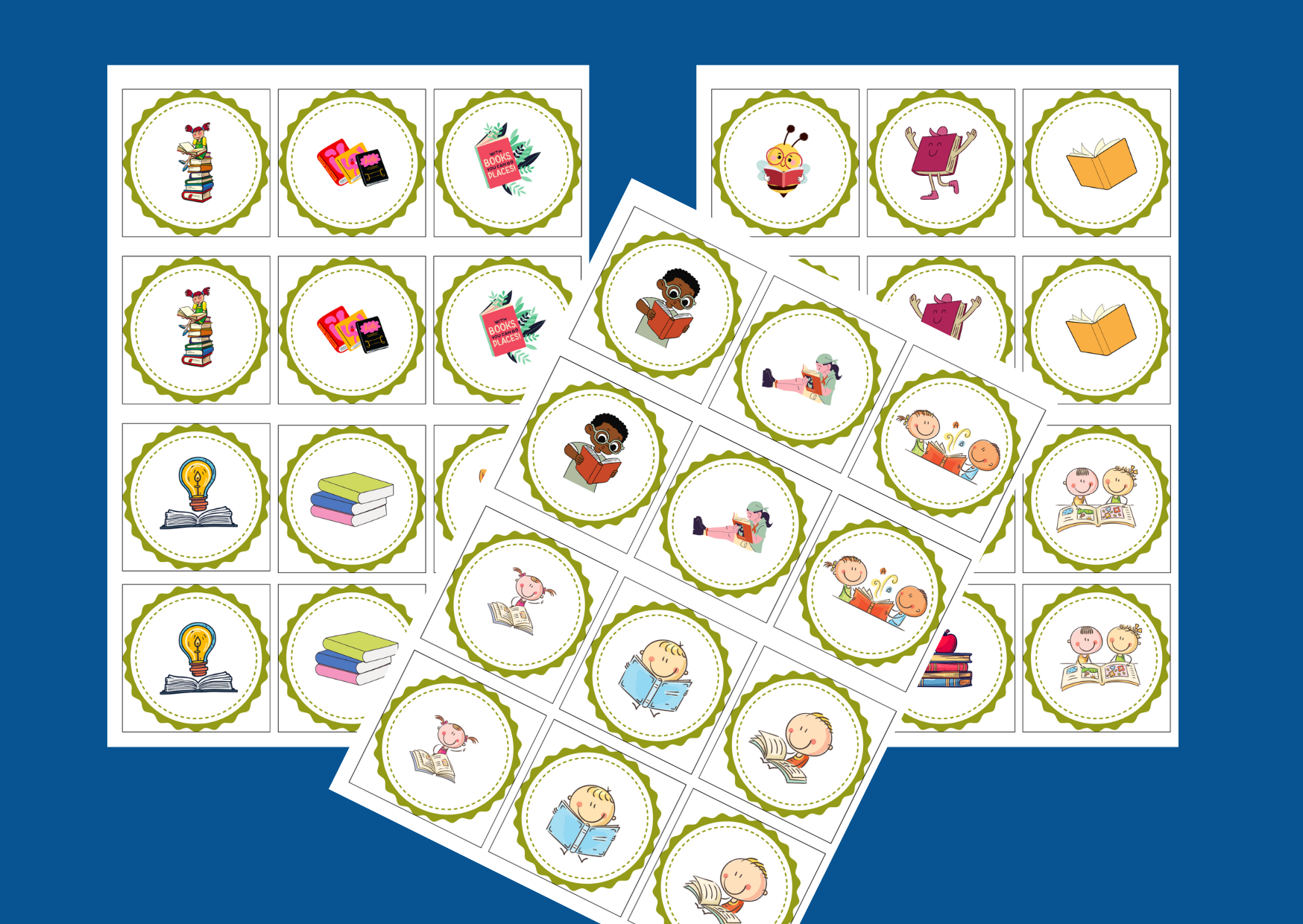 Gra memory uczy dzieci skupienia i koncentracji. Proponuję memory z ilustracjami związanymi w książkami i czytaniem (3 strony, na każdej po 12 ikonek). Po wycięciu materiał można zalaminować, aby dłużej służył.