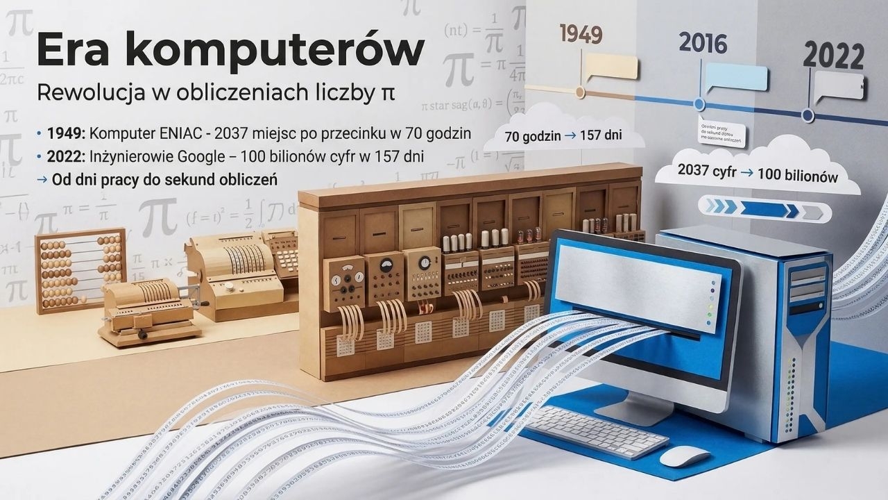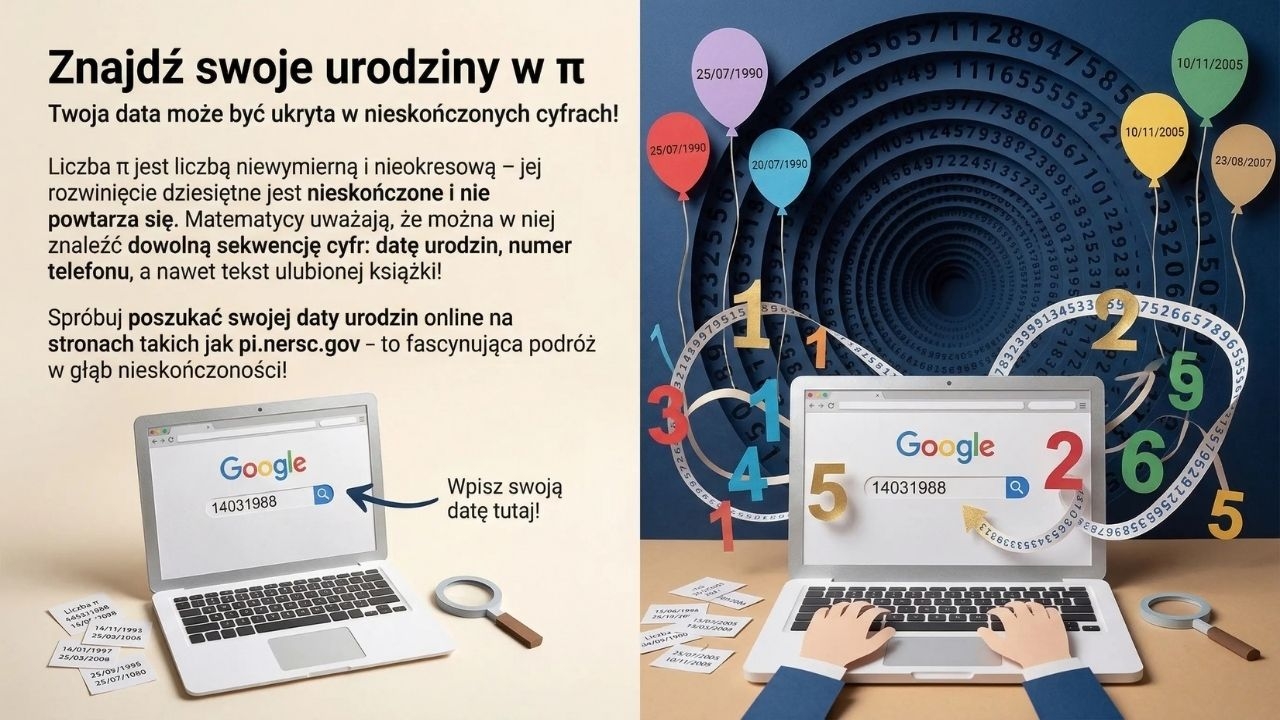 To efektowna, spójna wizualnie gazetka/prezentacja PDF na obchody Dnia Liczby Pi (14 marca), zbudowana jak ciekawa „podróż” po świecie π. Zestaw zawiera 1 plik PDF i 20 stron/20 plansz. Materiał zaczyna się okładką (str. 1), następnie wyjaśnia czym jest liczba π jako stosunek obwodu koła do średnicy i dlaczego zawsze wynosi około 3,14 (str. 2). Kolejna plansza pokazuje, dlaczego świętujemy 14 marca (3/14) i skąd wziął się Dzień Liczby Pi (str. 3), a potem wprowadza właściwości π jako liczby niewymiernej i „nieskończonej tajemnicy” (str. 4). Dalej materiał prowadzi przez historię: starożytne przybliżenia π (str. 5), metodę Archimedesa z wielokątami wpisanymi i opisanymi (str. 6), historię symbolu π oraz „ludolfinę” i postać Ludolfa van Ceulena (str. 7) oraz „erę komputerów” i rekordy obliczeń (str. 8). Kolejny blok pokazuje zastosowania i piękno matematyki: π w przyrodzie (str. 9), π w architekturze i sztuce (str. 10) oraz π w kosmosie (str. 11). Następnie uczniowie dostają inspiracje do aktywności: rekordziści zapamiętywania cyfr π (str. 12), pi-ematy jako kreatywna metoda pamięciowa (str. 13), eksperyment Igły Buffona jako sposób szacowania π (str. 14) oraz zabawę „znajdź swoje urodziny w π” (str. 15). Materiał kończy się podsumowaniem (str. 16) i trzema gotowymi zadaniami projektowymi: „Stwórz własne Miasto Pi” (str. 17), „Napisz krótki pi-emat” (str. 18), „Oblicz swoje własne Pi” (str. 19) oraz finałowym quizem wiedzy (str. 20).