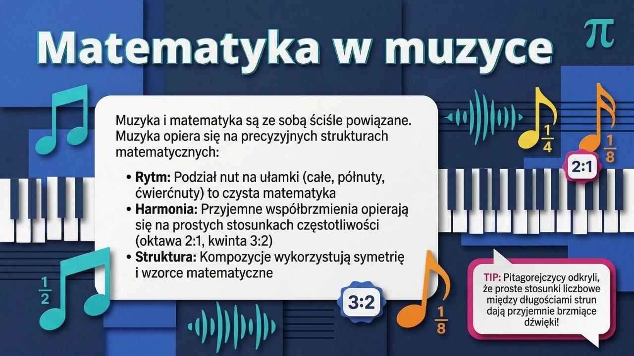 Jak pracować z materiałem? Możesz użyć go jako dużej gazetki korytarzowej (wydruk A4/A3) albo jako krótkiej prezentacji na lekcji tematycznej. Świetnie działa też wersja „stacje”: uczniowie w grupach przechodzą kolejno przez plansze „Matematyka w…” oraz dwie łamigłówki, zapisując po jednym wniosku/ciekawostce i jednym zastosowaniu w życiu. Na koniec robicie quiz „Prawda czy fałsz?” jako szybkie podsumowanie, a chętni dostają „misję” z ostatniej planszy.
