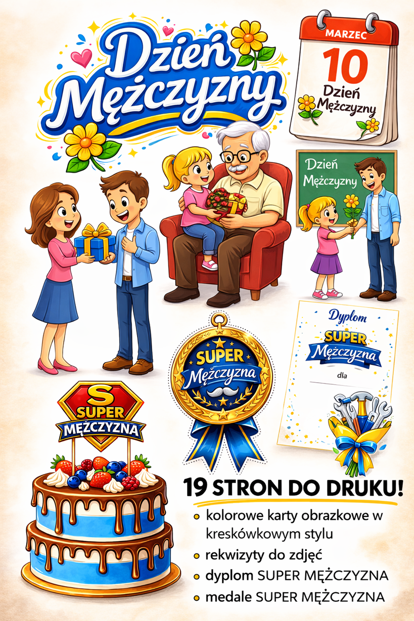 🎉 Dzień Mężczyzny – gotowy zestaw do wydruku (10 marca) 🎉