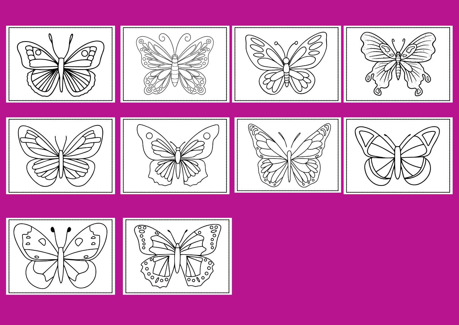 Materiał zawiera 30 kolorowanek z motylami oraz stronę tytułową. Po pomalowaniu przez dzieci kolorowanek, można stworzyć gazetkę – klasową galerię portretów motyli. Wszystkie karty mają format A4.