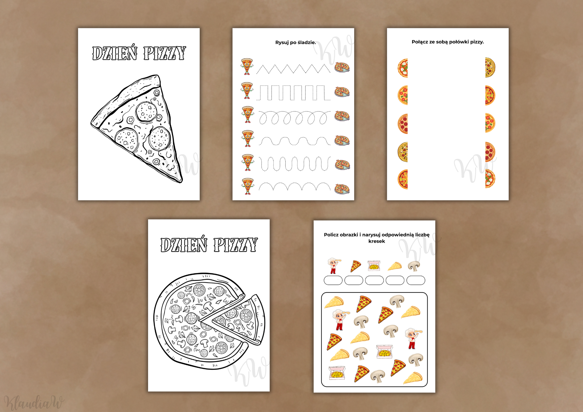 Zestaw „Dzień Pizzy” – nauka i zabawa w jednym! Zorganizuj niezapomniane zajęcia, które połączą edukację i kreatywną zabawę! Ten kolorowy zestaw został stworzony specjalnie na Dzień Pizzy i zawiera wszystko, czego potrzebujesz, aby dzieci aktywnie i radośnie uczestniczyły w zajęciach. W zestawie znajdziesz: - girlandę w kształcie kawałków pizzy z napisem Dzień Pizzy, - duży obrazek kucharza (9 kartki A4 do złożenia), - 2 kolorowanki XXL (9 kartek A4 każda) z dziećmi i kucharzem, - zabawę w układanie pizzy według przepisu – pizza XL (4 kartki A4 do złożenia), aż 13 składników i 24 przepisy, - dyplom – każde dziecko poczuje się wyjątkowo! - odznaki - 4 szablony, - karty pracy - 12 stron Wszystko gotowe – wystarczy wydrukować i zacząć zabawę!