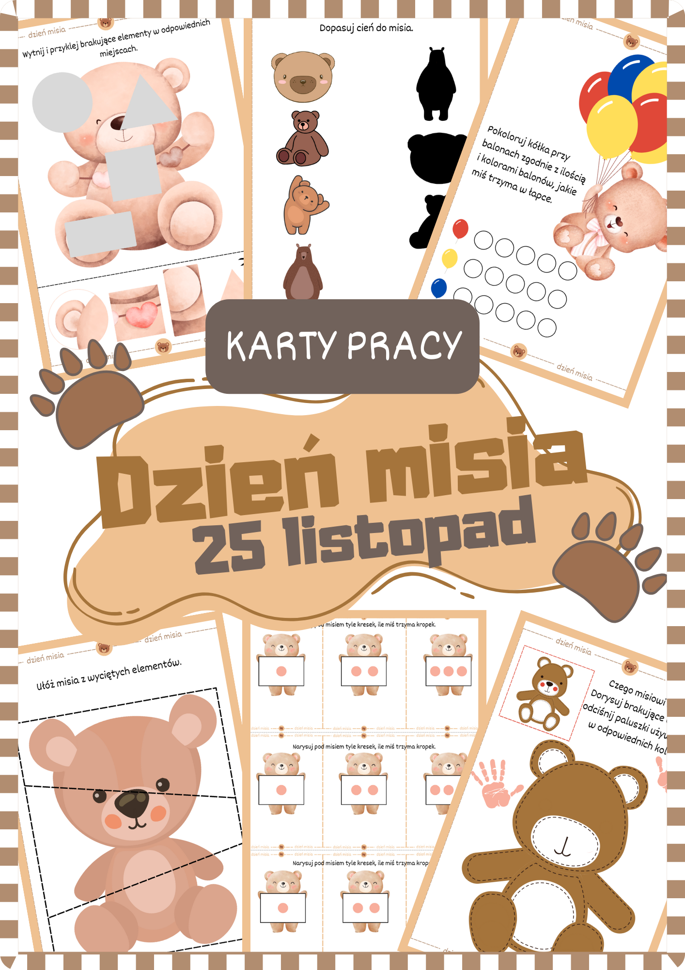 Karty pracy na Dzień Pluszowego Misia - 10 zadań w tym m.in: