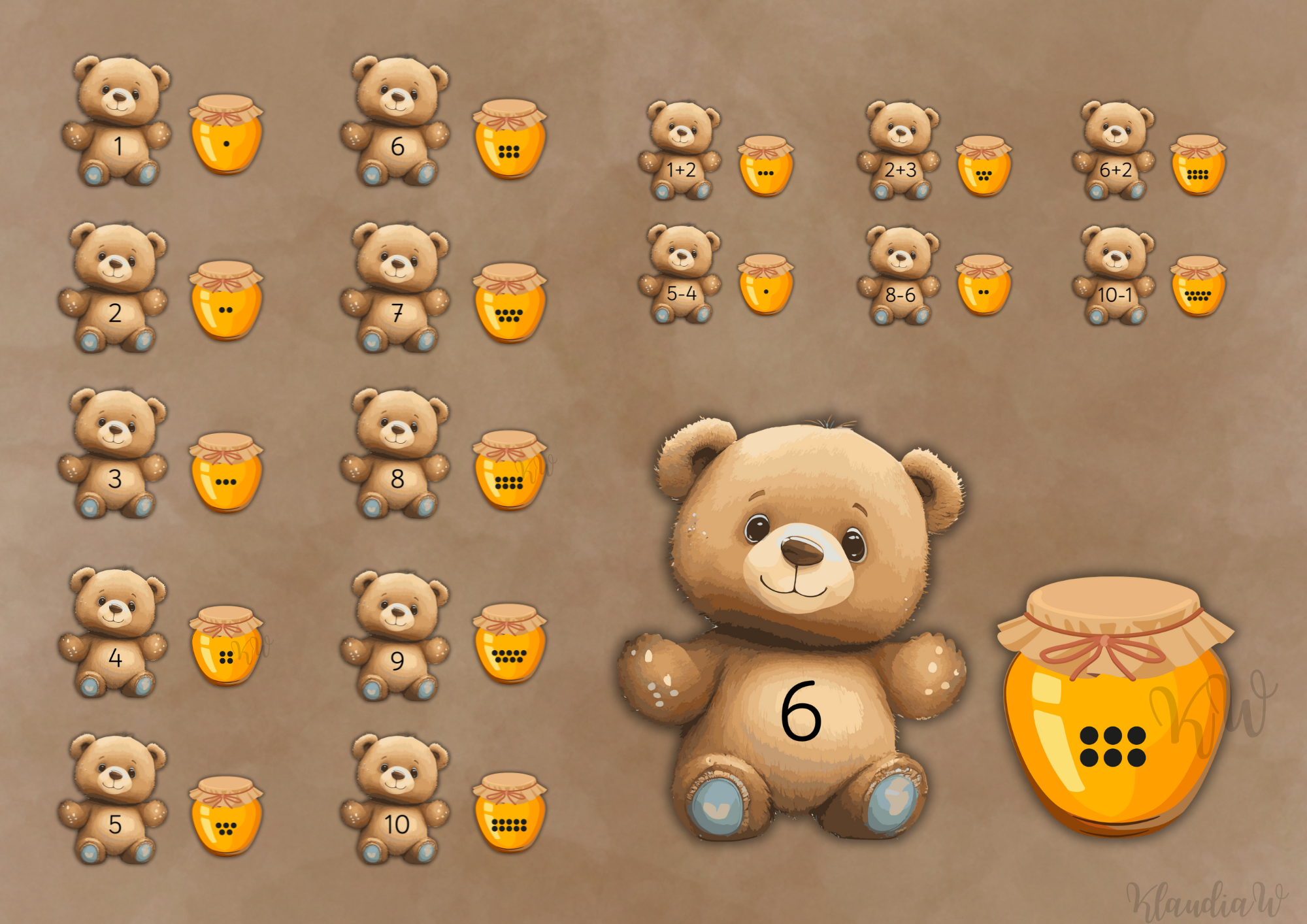 Przygotowałam zestaw z uroczymi misiami i słoiczkami miodu, dzięki którym nauka stanie się świetną zabawą. Świetnie sprawdzi się podczas Dnia Pluszowego Misia lub w codziennej pracy z dziećmi.