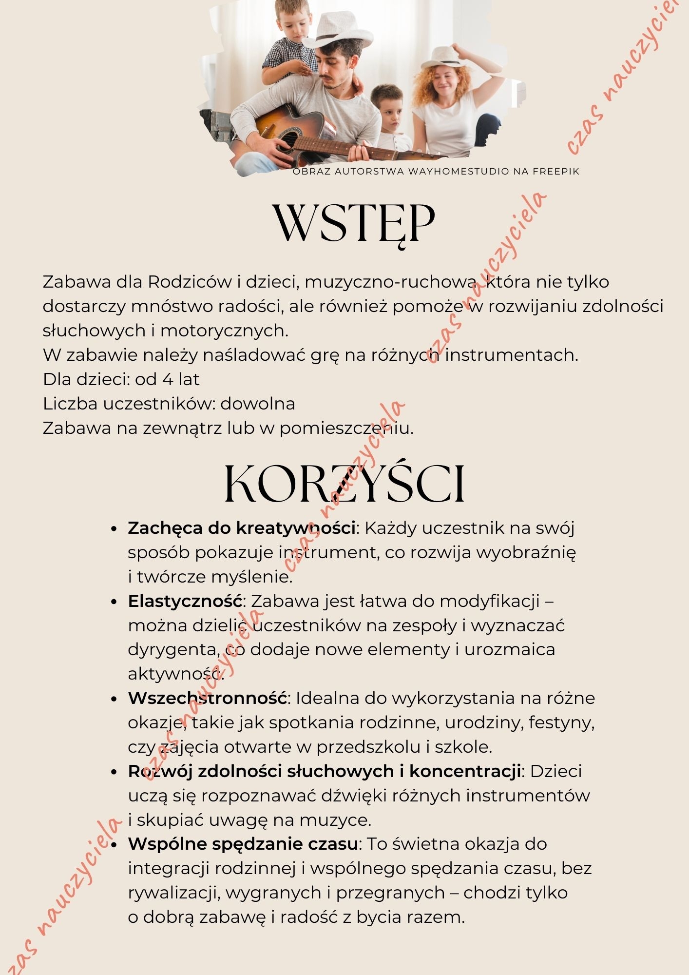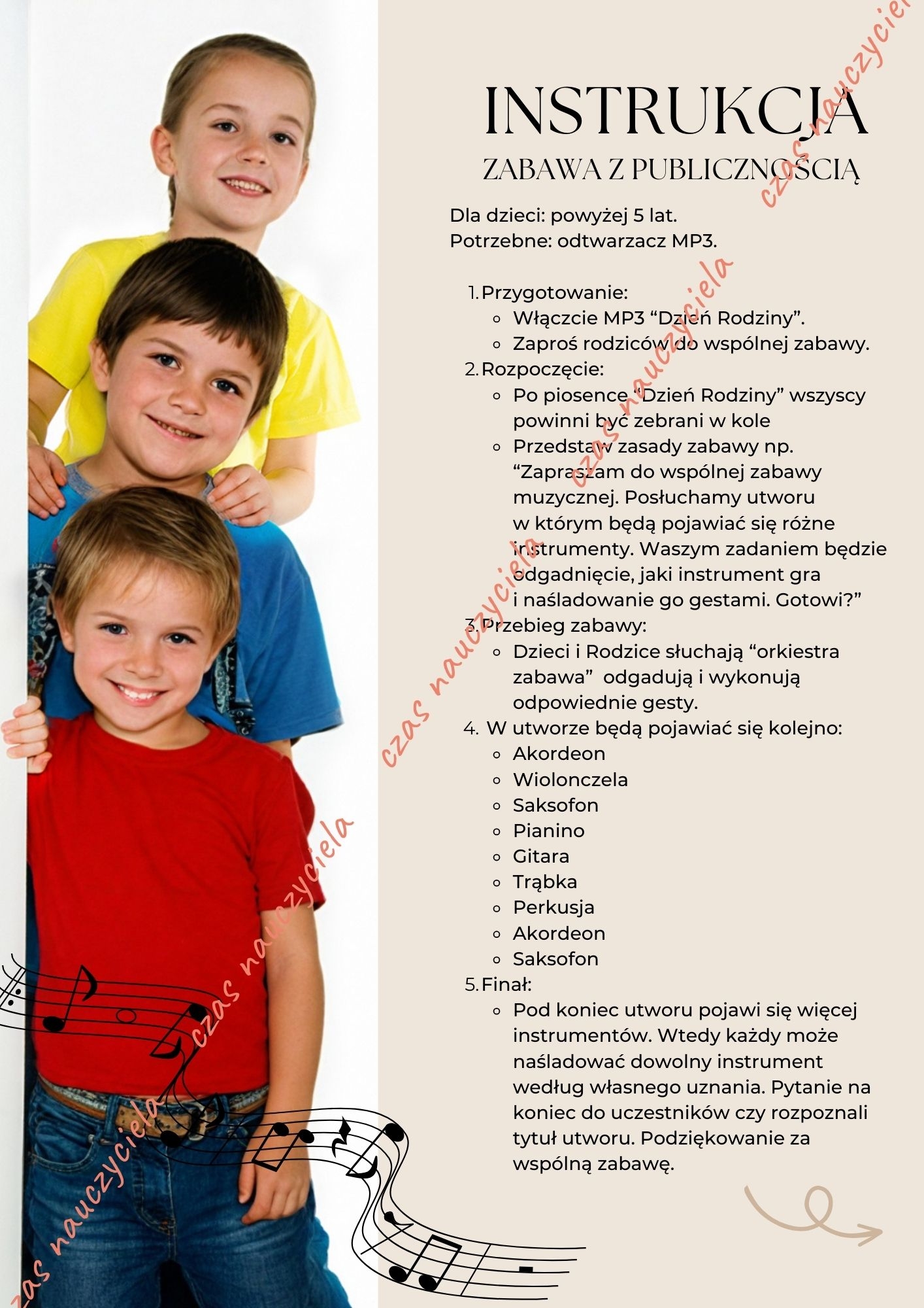 Zabawa muzyczno-ruchowa ORKIESTRA to idealny sposób na rozrywkę i wspólną zabawę dzieci i dorosłych + mp3 z piękną, taneczną piosenką pod tytułem "Dzień Rodziny" idealną na rodzinny piknik lub zajęcia otwarte.