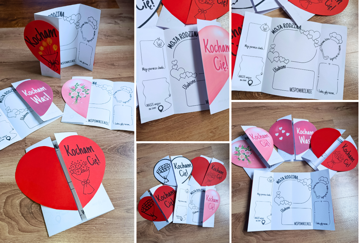 Dzieci uzupełniają te miejsca właściwymi rysunkami (portret siebie jako niemowlęcia, rysunek domu itp.). W młodszych grupach praca nad laurką zapewne będzie musiała zostać podzielona na kilka dni, ale warto! Następnie dekorujecie front upominku (szablon dołączony do materiału). Tak przygotowana karta staje się niesamowitym prezentem i pamiątką, wokół której zbudowane jest całe przedstawienie.