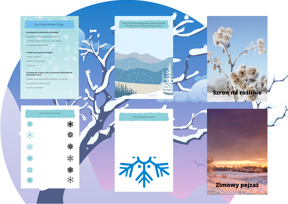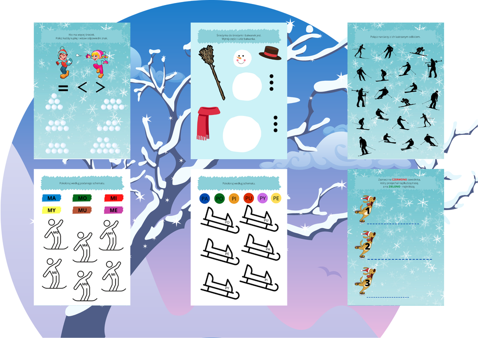 #sprzedaż #śnieg #dzieńśniegu #bałwanek #śnieżynka #królowaśniegu #teatrzyk #labirynt #połączwpary #kodowanie #lustrzaneodbicie #analizawzrokowa #syntezawrokowa #grafomotoryka #liczenie #quiz