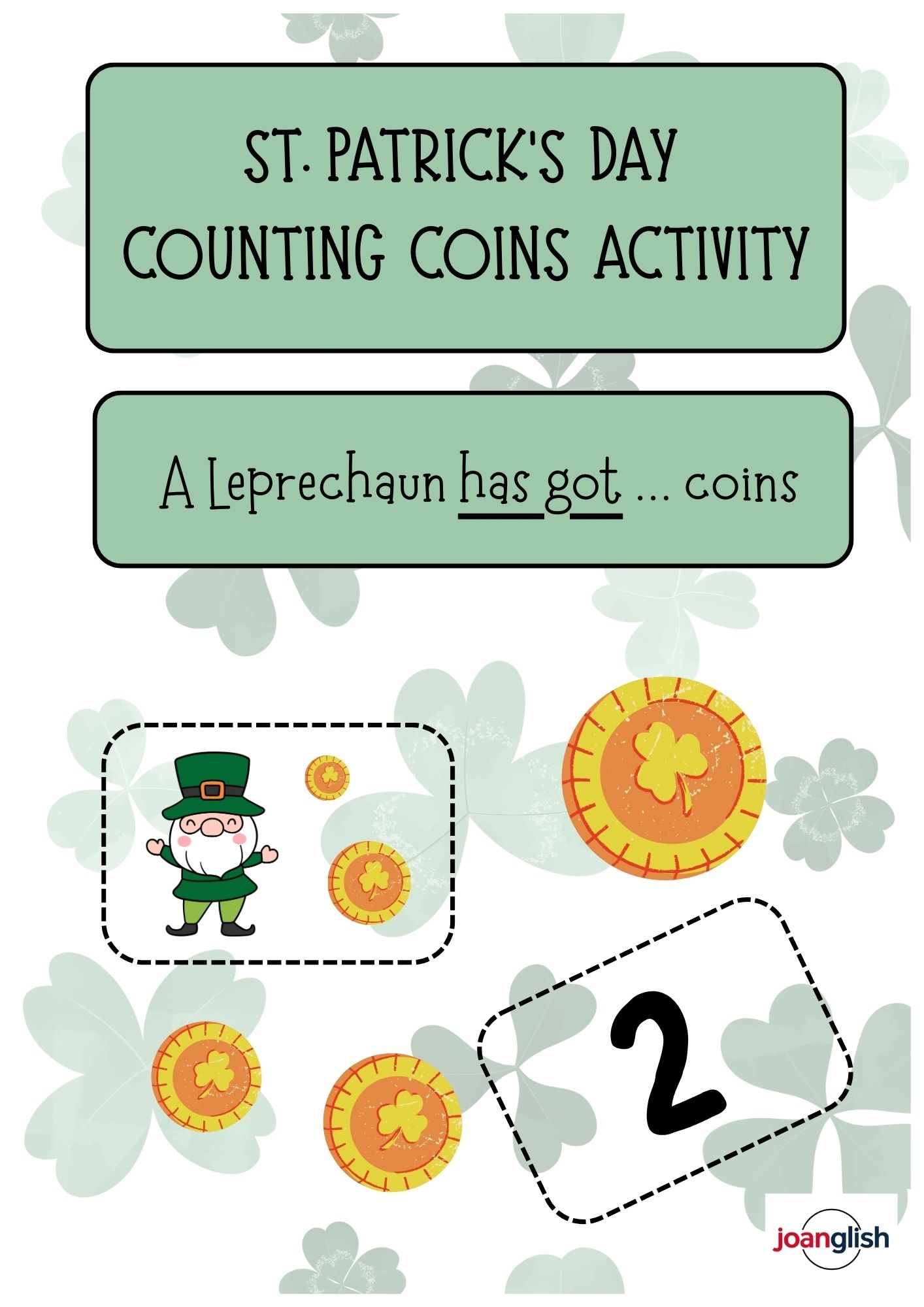 Dzieci liczą monety i dopasowują odpowiednią cyfrę do obrazka, jednocześnie ćwicząc użycie zwrotu w języku angielskim: “A Leprechaun has got … coins.” Zabawa rozwija umiejętności matematyczne, koncentrację oraz znajomość podstawowych zwrotów w języku angielskim.