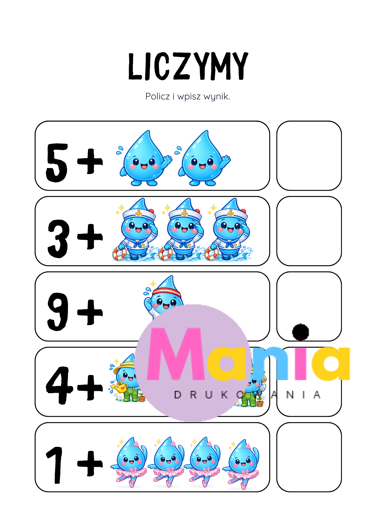 • matematyczne karty pracy