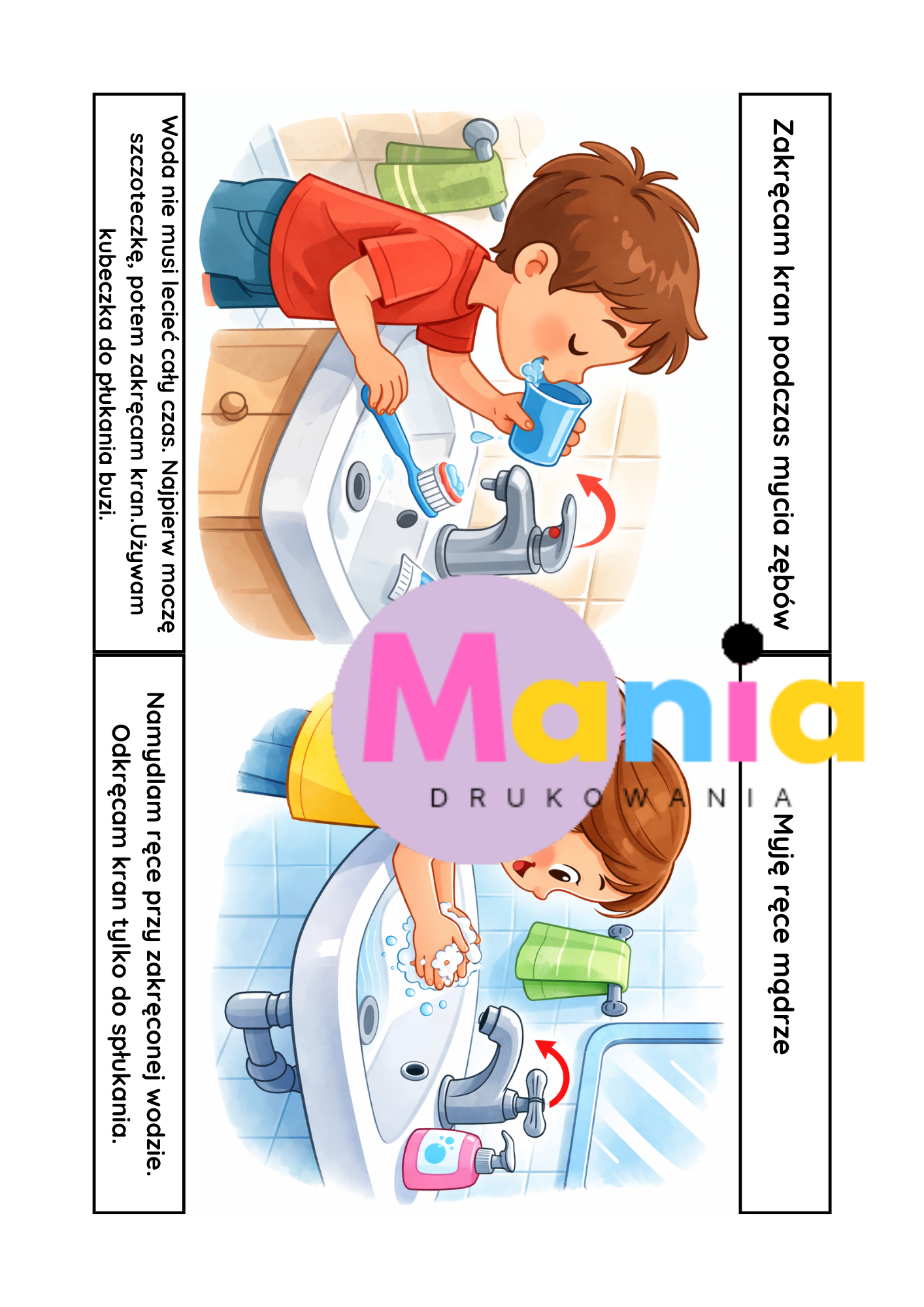 • ilustracje: jak dzieci i rodzice mogą oszczędzać wodę
