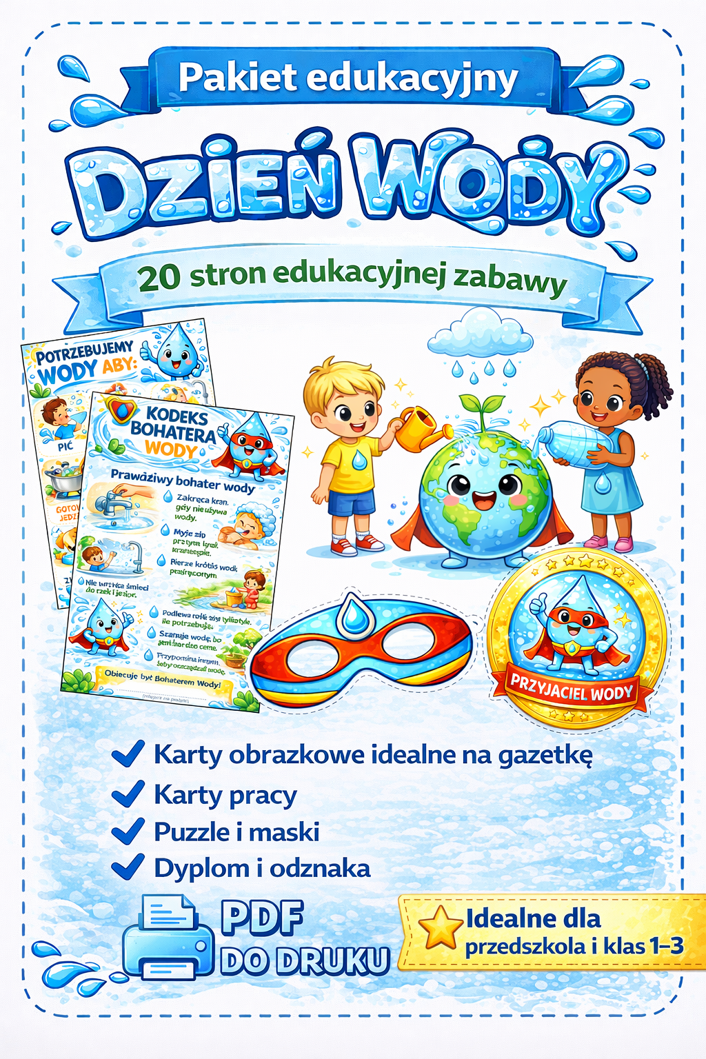 Gotowy zestaw materiałów do przeprowadzenia zajęć z okazji Światowego Dnia Wody (22 marca).
