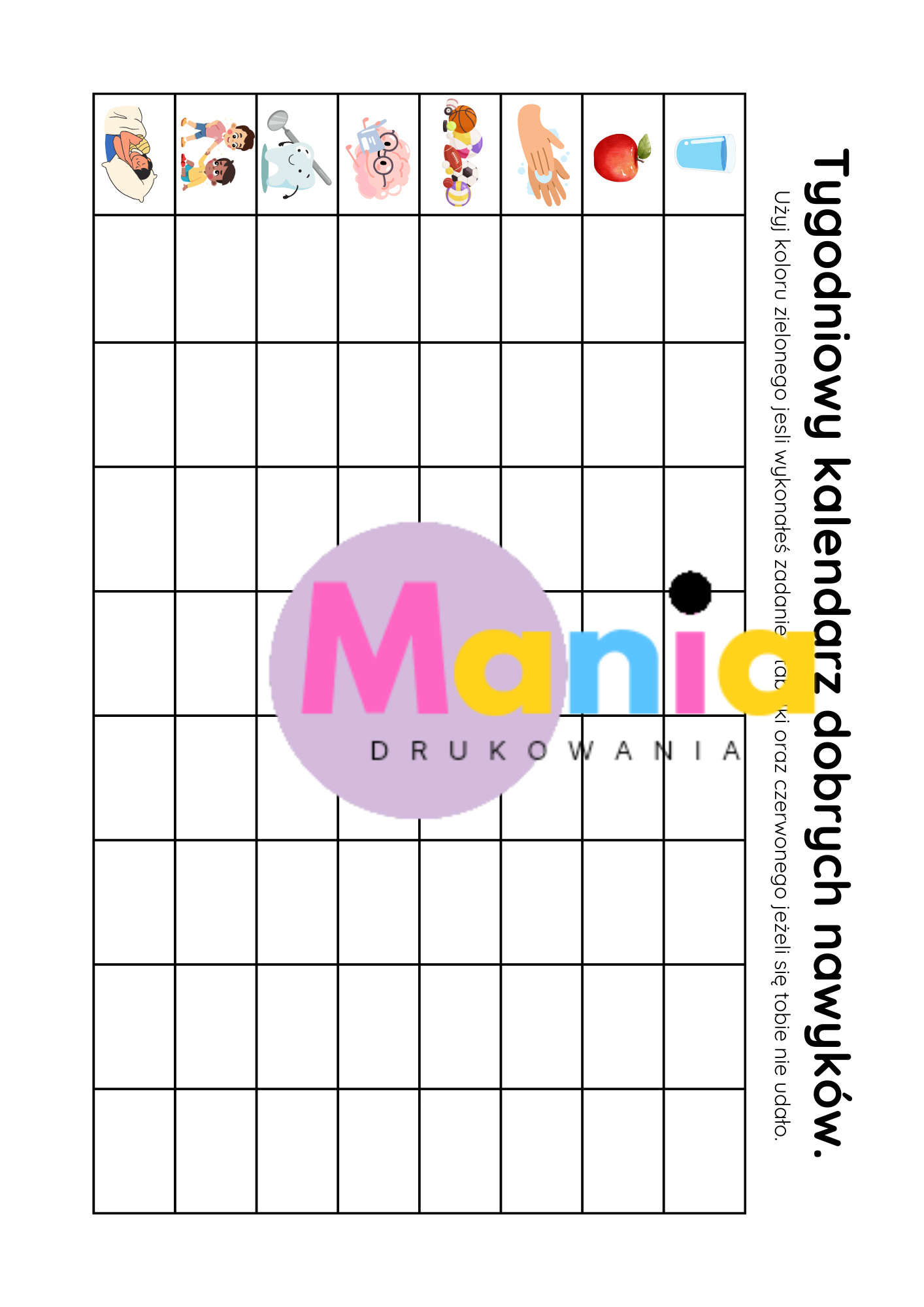 ✔ planszę tygodniowych zdrowych nawyków
