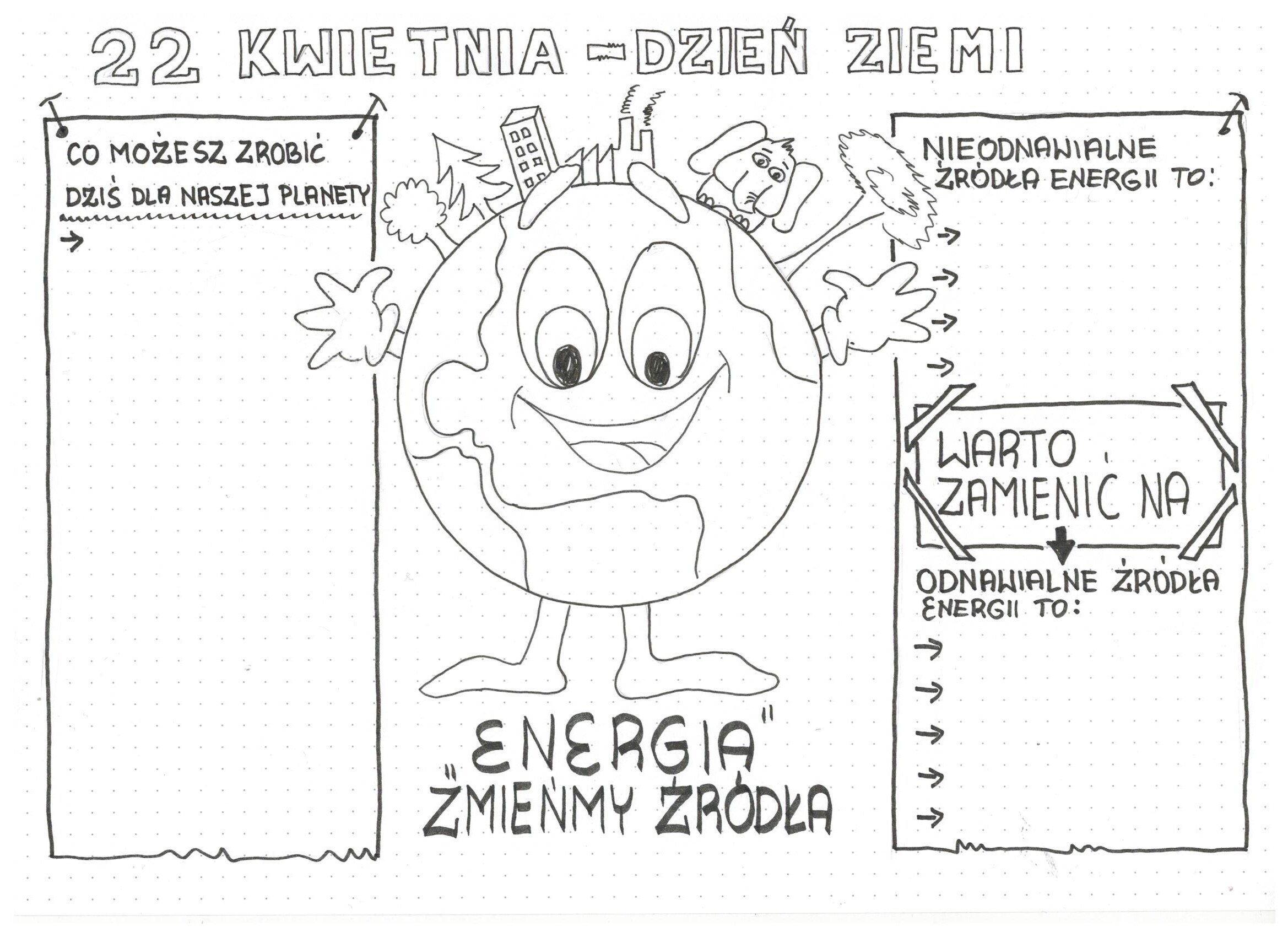 Sketchnotka jako KP do uzupełnienia związana ze światowym Dniem Ziemi.