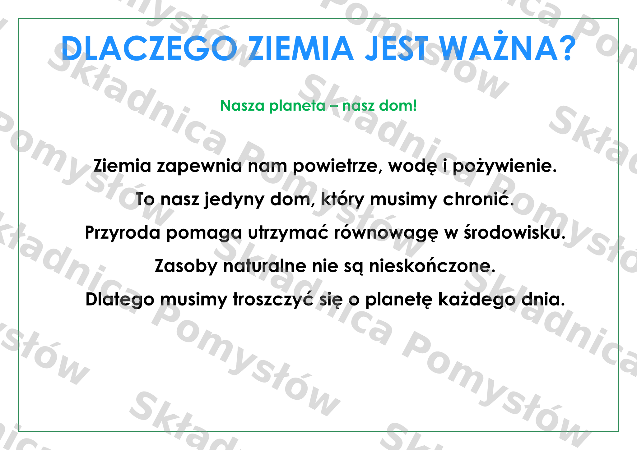 Materiał edukacyjny w formie gazetki szkolnej poświęconej tematyce ochrony środowiska i ekologii. Zawiera przejrzyste, krótkie treści dostosowane do percepcji uczniów oraz gotowe sekcje do ekspozycji na tablicy lub korytarzu szkolnym.