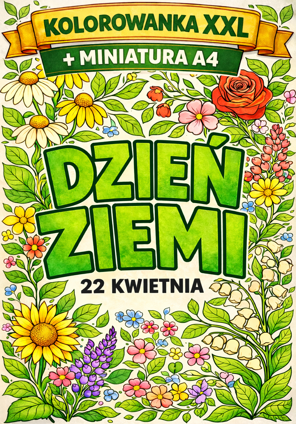 🌍 Materiał zawiera efektowną kolorowankę edukacyjną z napisem „Dzień Ziemi – 22 kwietnia” w otoczeniu kwiatowych ilustracji. Zestaw został przygotowany w dwóch praktycznych wersjach: jako pojedyncza karta A4 oraz jako plakat wielkoformatowy do złożenia z 9 stron A4. Materiał świetnie sprawdzi się jako dekoracja sali, gazetka tematyczna lub wspólna praca plastyczna związana z obchodami Dnia Ziemi.