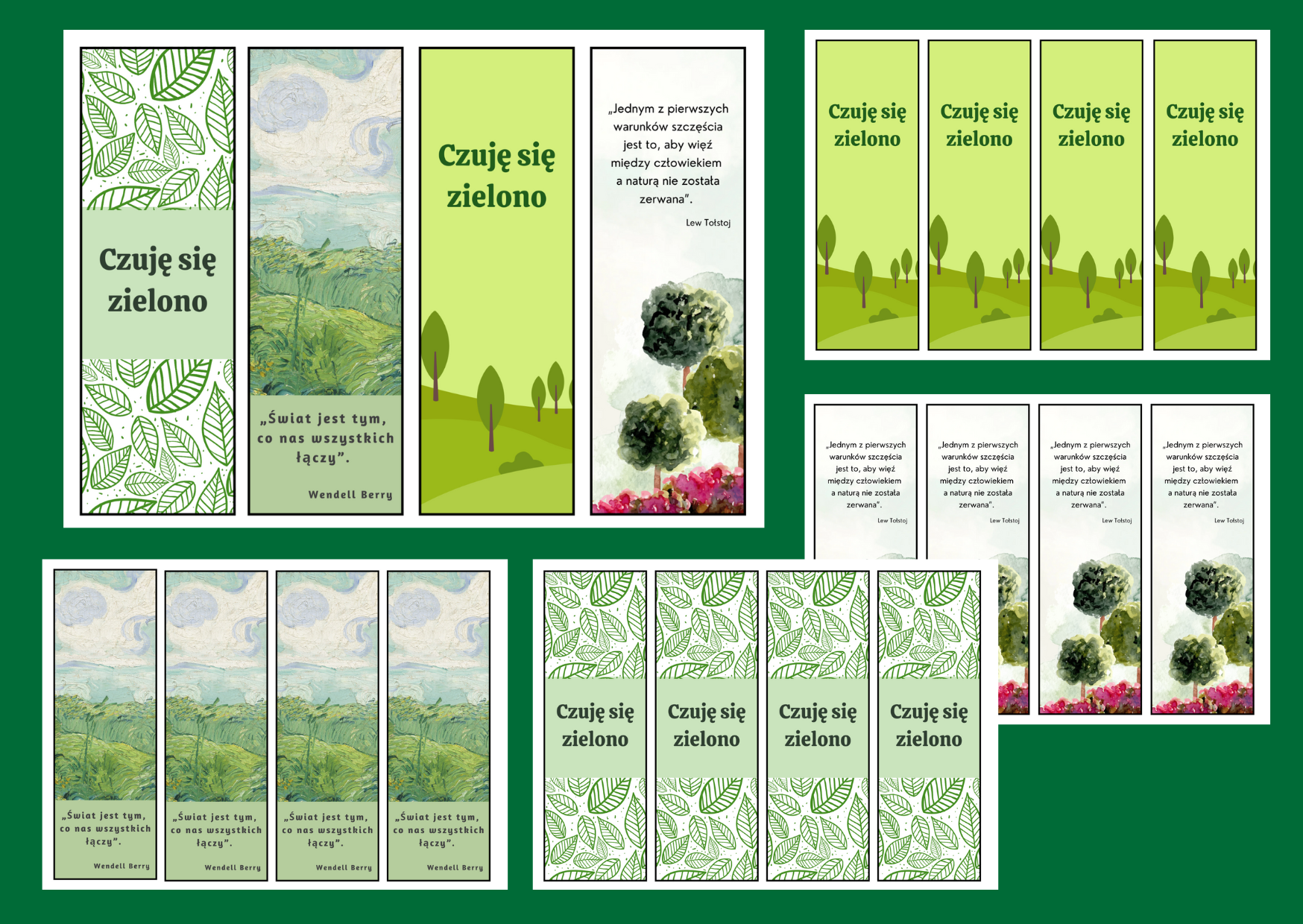 Zestaw 4 rodzajów zakładek do książek z okazji Dnia Ziemi. Składa się z 5 stron: na pierwszej stronie zamieszczony jest zestaw 4 zakładek, pozostałe strony przeznaczone są dla poszczególnych wersji. Warto po wydrukowaniu i wycięciu zakładki zalaminować (ewentualnie wydrukować na grubszym papierze).