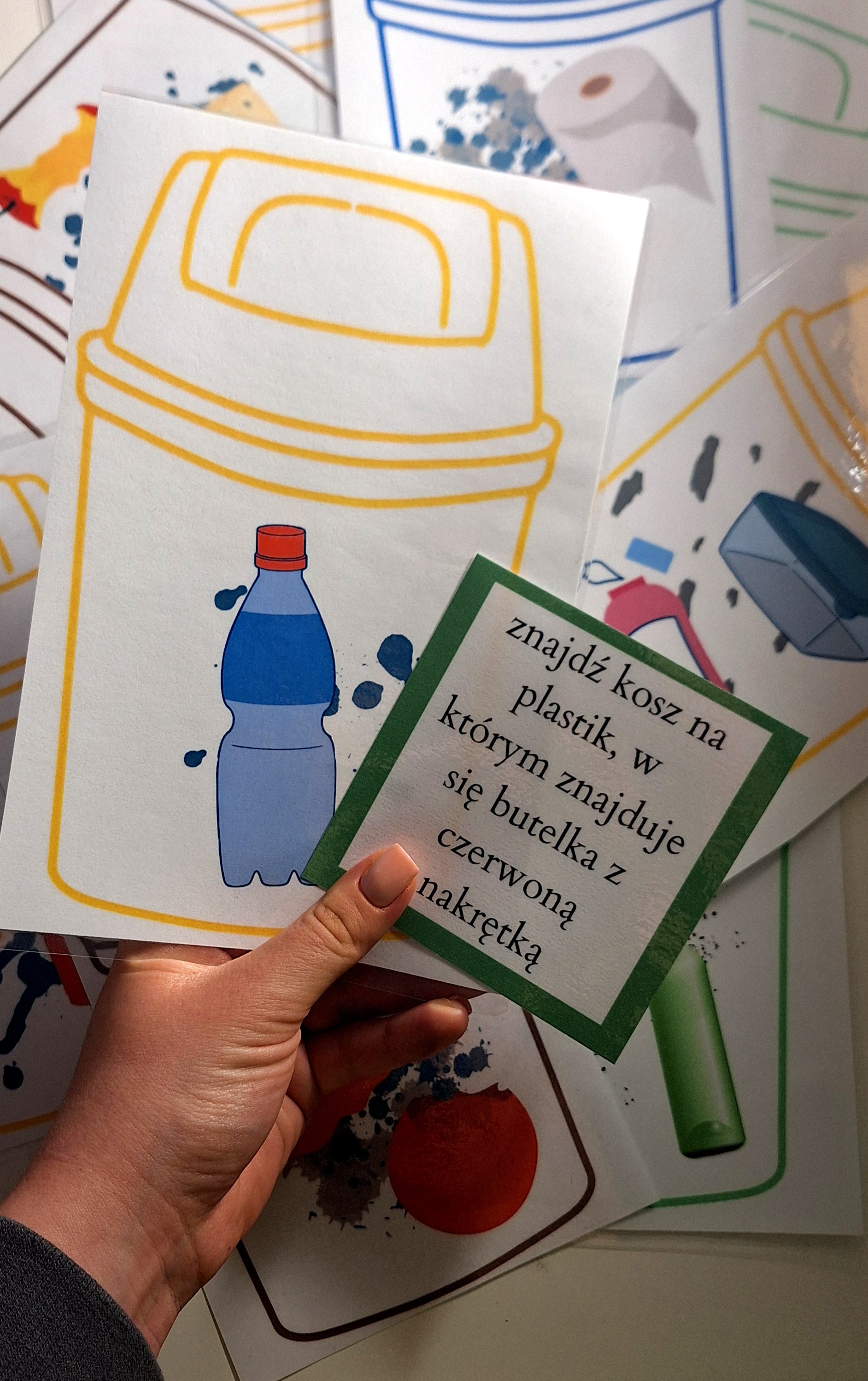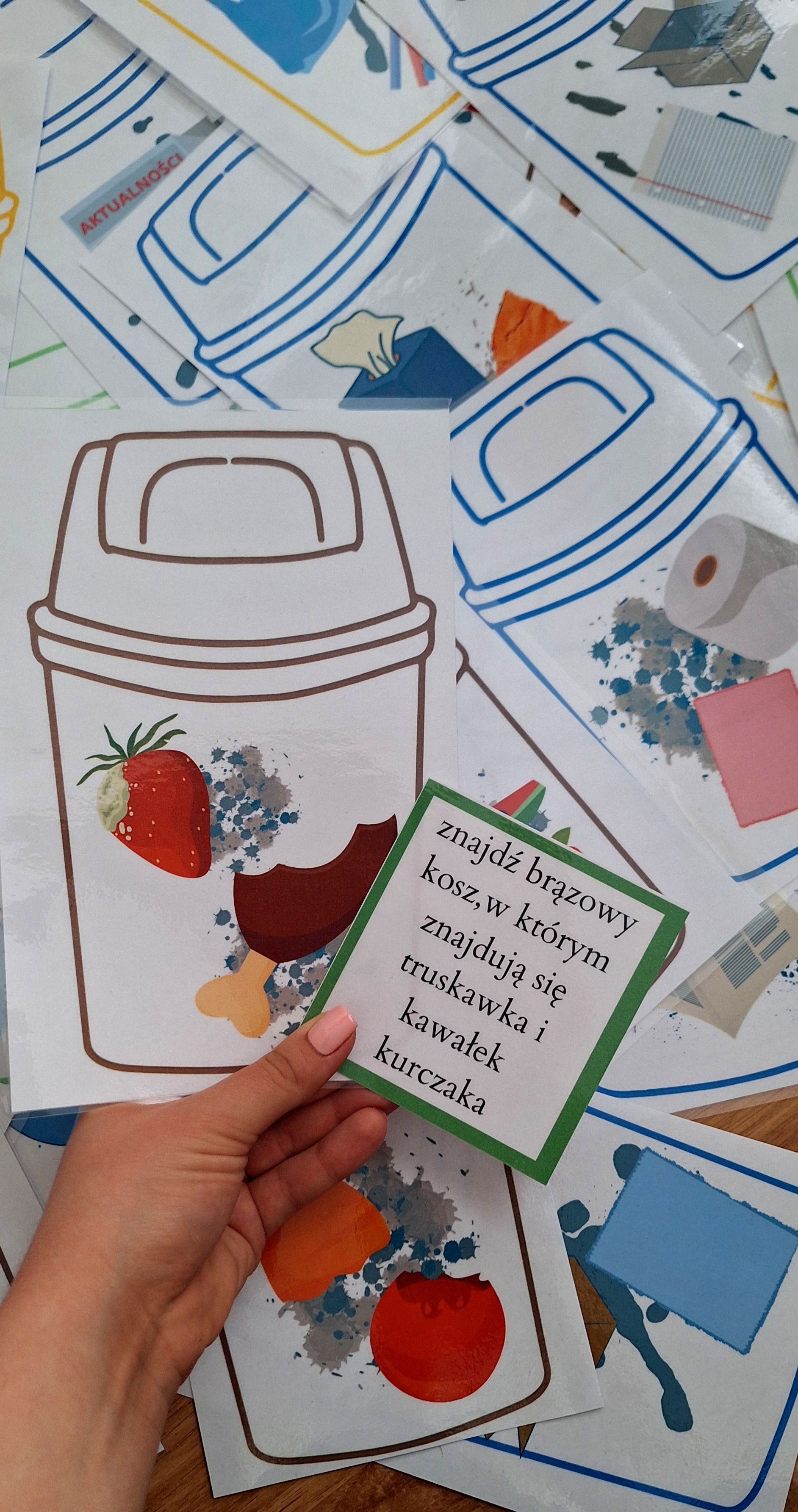 Dziecko może także wcielić się w rolę nauczyciela i odczytywać karty. Twoim zadaniem będzie odnaleźć właściwy kosz🙈