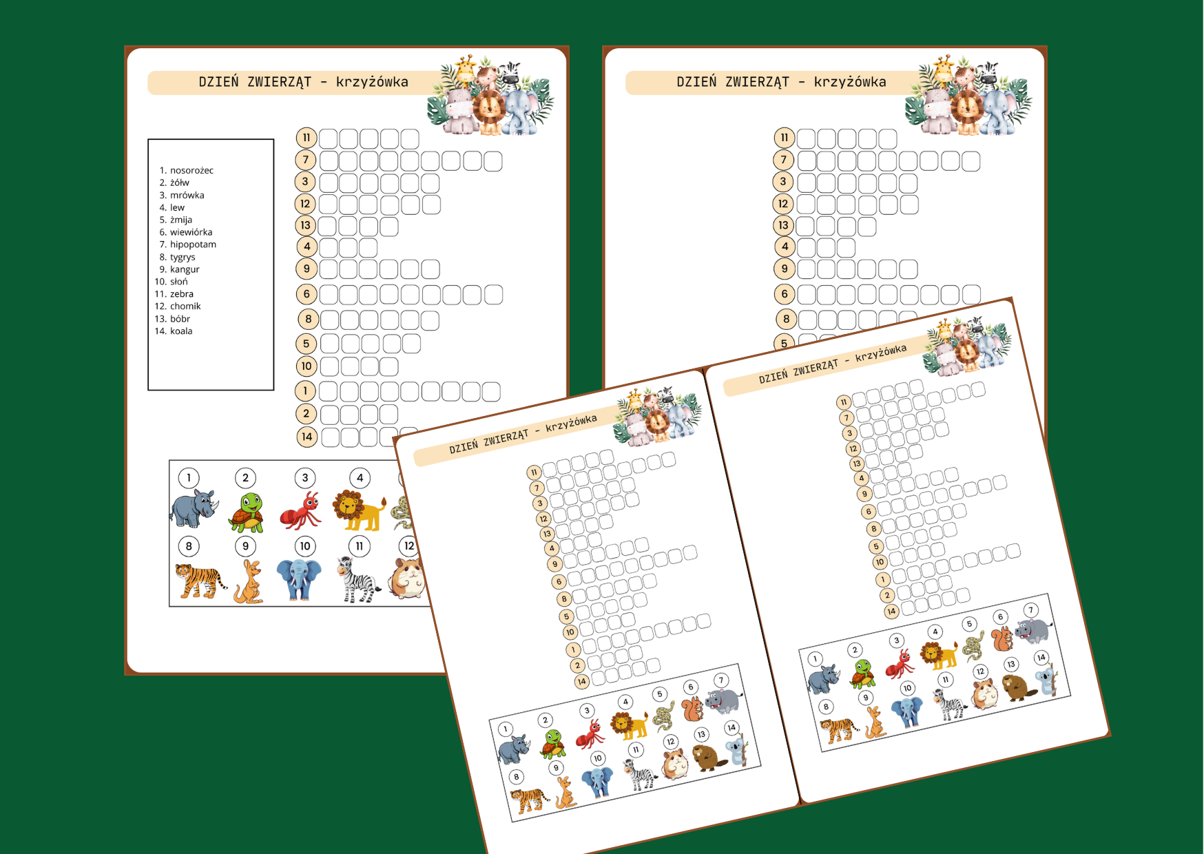 Na pozostałych moich aukcjach można zakupić inne materiały związane z Dniem Zwierząt, np.: https://zlotynauczyciel.pl/downloads/dzien-zwierzat-puzzle-15-szt/ https://zlotynauczyciel.pl/downloads/dzien-zwierzat-wykreslanka-cwiczenia-redakcyjne-ortografia-biblioteka/ https://zlotynauczyciel.pl/downloads/dzien-zwierzat-domino-obrazkowe-biblioteka/ https://zlotynauczyciel.pl/downloads/dzien-zwierzat-dooble-36-szt-biblioteka/ https://zlotynauczyciel.pl/downloads/dzien-zwierzat-puzzle-14-szt/ https://zlotynauczyciel.pl/downloads/dzien-zwierzat-memory-30-szt/ https://zlotynauczyciel.pl/downloads/dzien-zwierzat-girlanda-gazetka-biblioteka-wersja-2/ https://zlotynauczyciel.pl/downloads/dzien-zwierzat-girlanda-gazetka-biblioteka-wersja-1/Grafiki wykorzystane w materiale pochodzą z zasobów canvy.