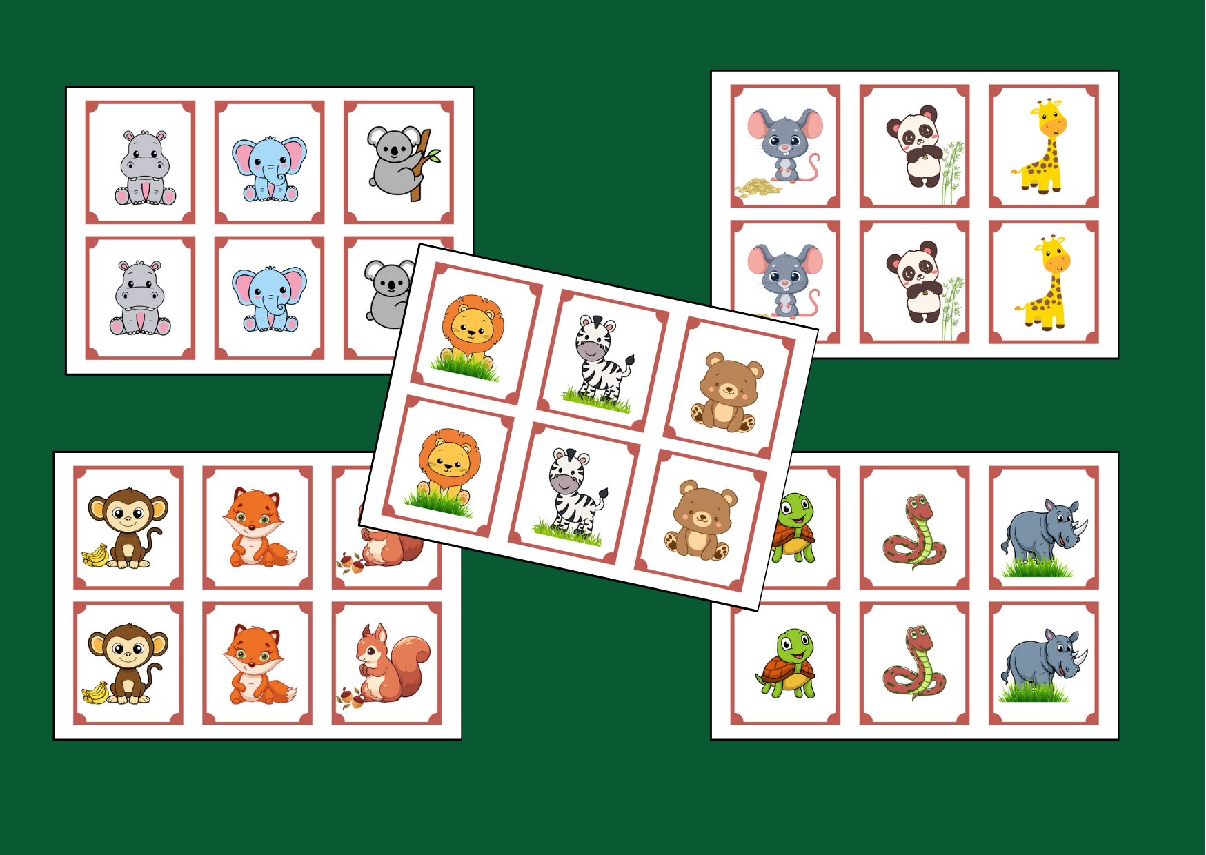 Gra memory uczy dzieci skupienia i koncentracji. Proponuję memory z ilustracjami związanymi z Dniem Zwierząt (5 stron, na każdej po 6 ikonek). Po wycięciu materiał można zalaminować, aby dłużej służył.