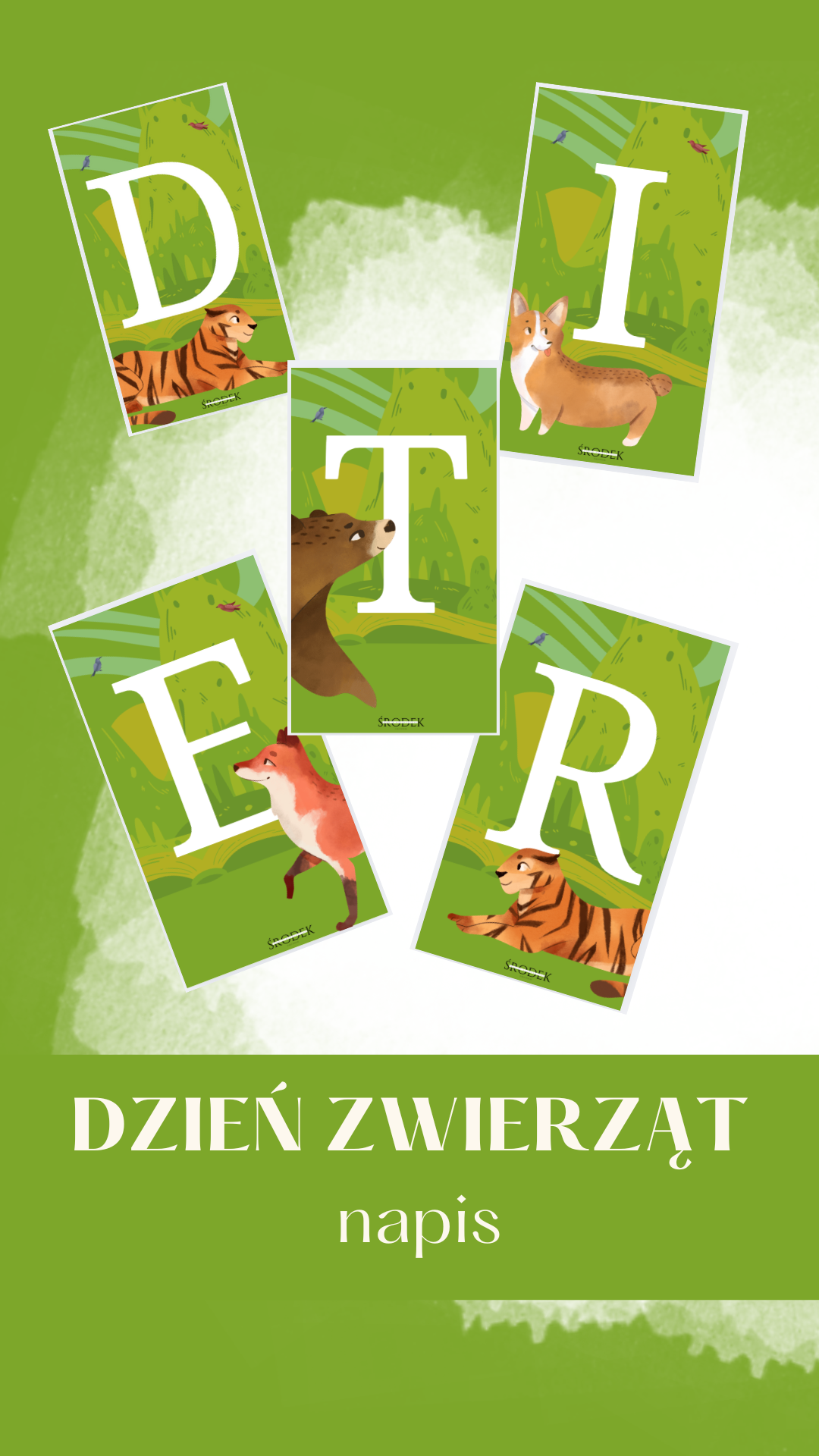 Zwierzęta każdy zna, zwierzęta są wśród nas... W tym pliku znajdziesz napis z okazji "Dnia zwierząt". Wykorzystaj go w dowolnym miejscu... na tablicy, ściance, gazetce...