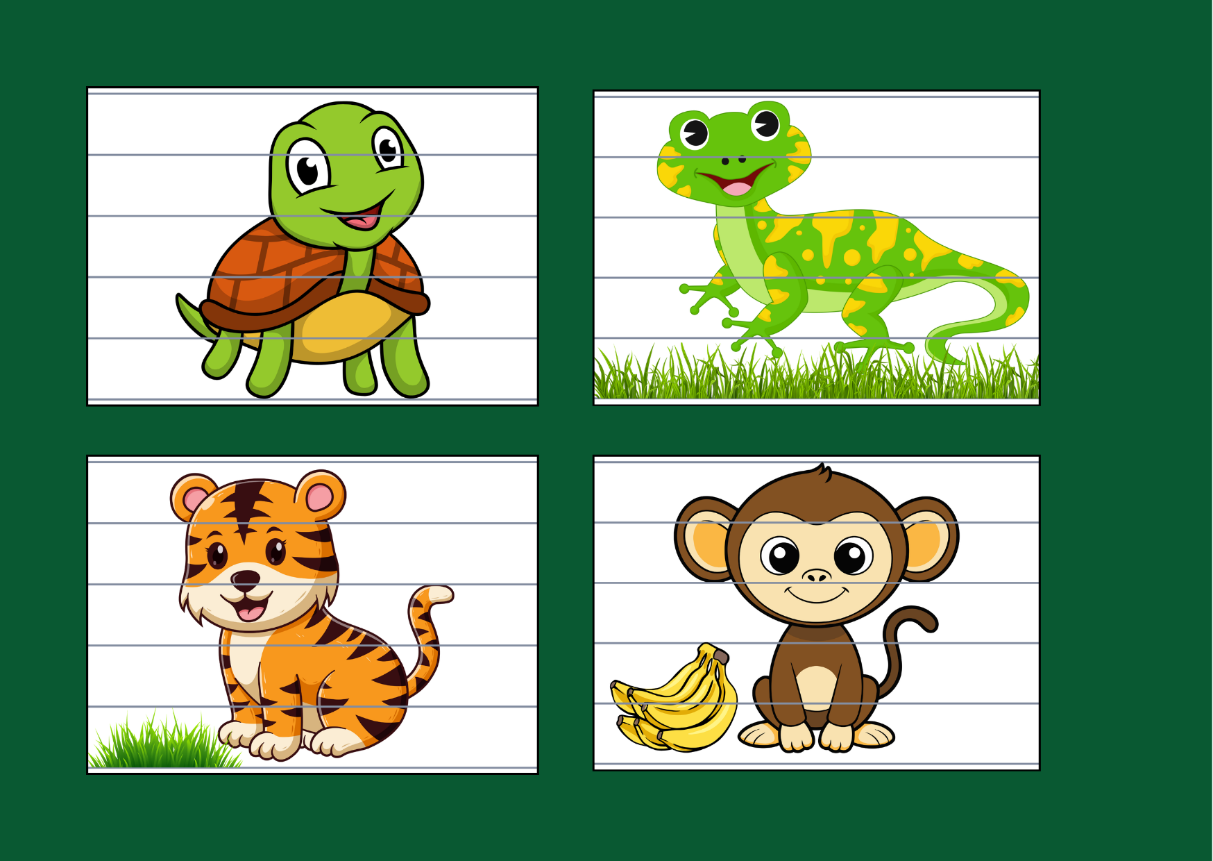 Zestaw 14 puzzli dla młodszych dzieci z ilustracjami zwierząt. Na pozostałych moich aukcjach można zakupić inne materiały związane z Dniem Zwierząt, np. girlandy, memory.