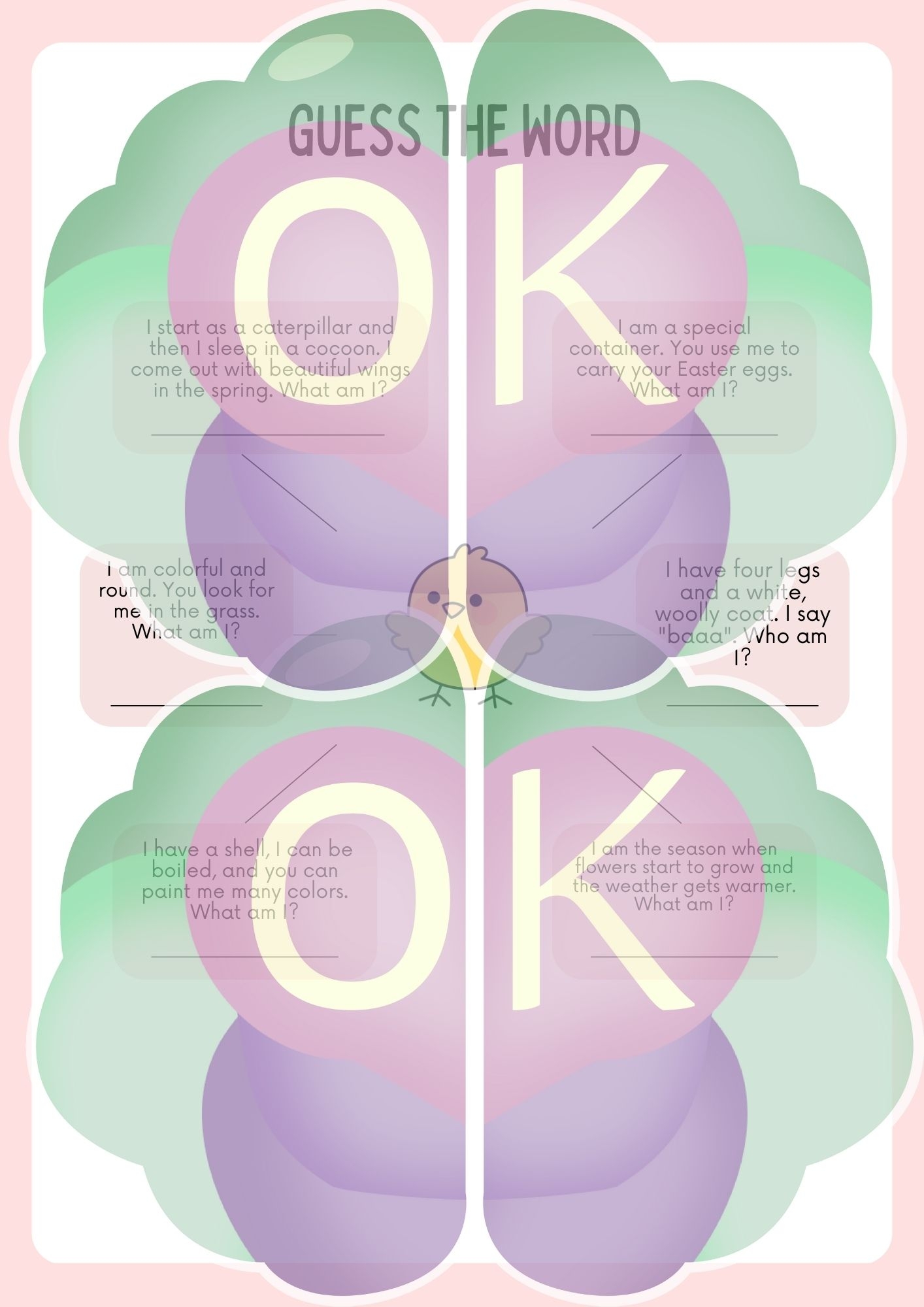 Materiały wizualne i zagadki: Estetyczne Flashcards do wprowadzania słówek oraz zestaw zagadek logicznych.