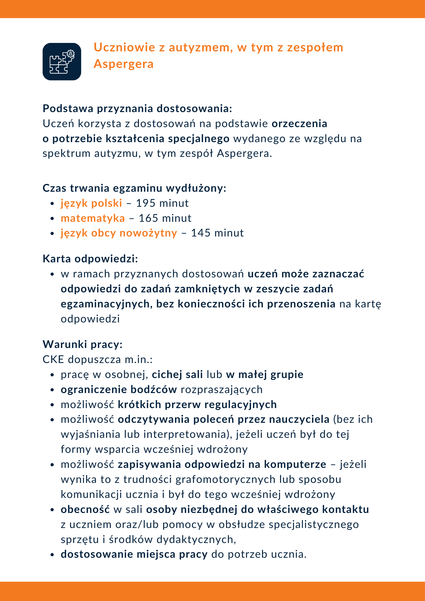 - dostosowania warunków i formy przeprowadzania egzaminu