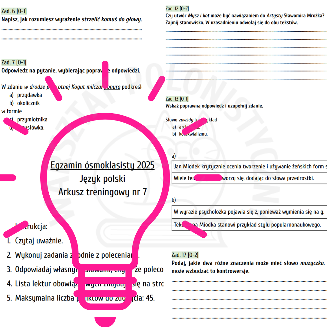 Przykładowy arkusz egzaminu ósmoklasisty, zgodny ze zmianami na rok 2025.