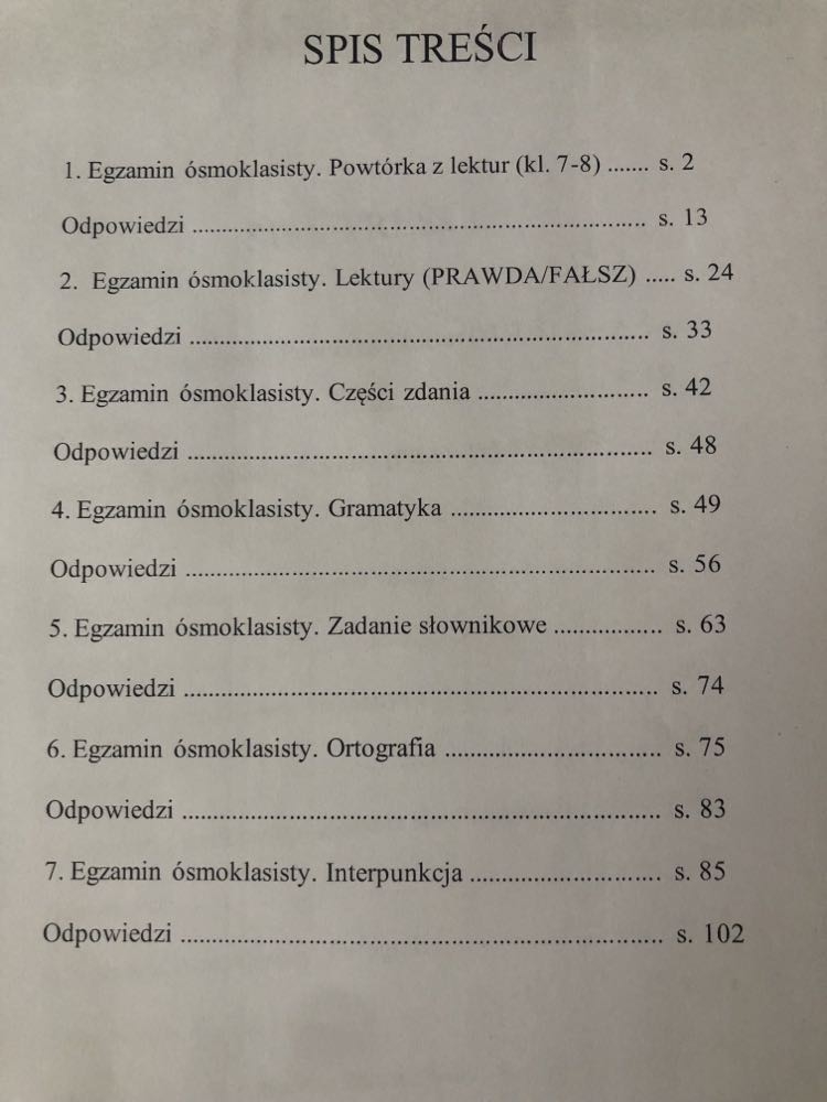 Materiał składa się z 7 części (dostępnych osobno w moich materiałach): Powtórka z lektur, Lektury (PRAWDA/FAŁSZ), Części zdania, Gramatyka, Zadanie słownikowe, Ortografia, Interpunkcja. Po każdej części znjdują się odpowiedzi. Łącznie materiał liczy 109 stron. Materiał pozwala utrwalić wiadomości, potranować przed sprawdzianem czy egzaminem.