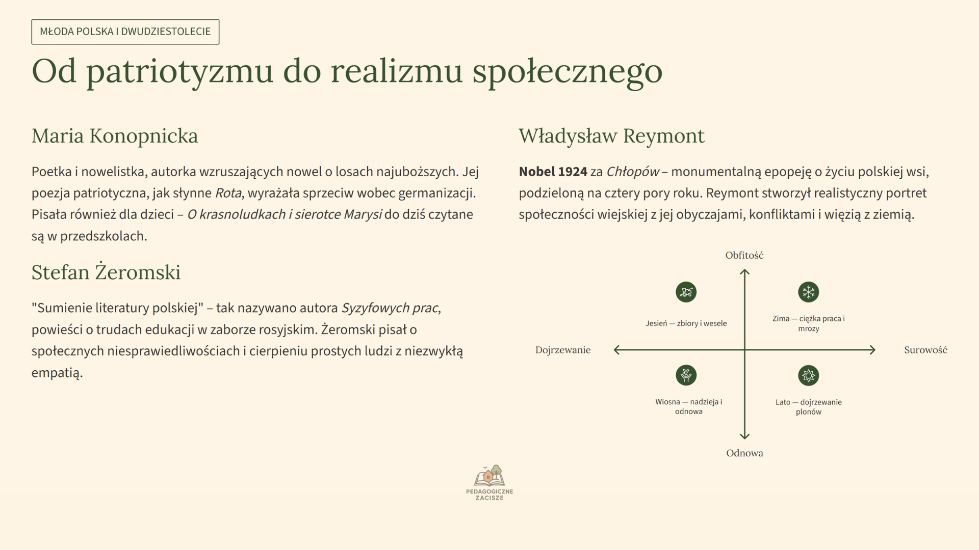 Pomaga uczniom szybko przypomnieć najważniejsze informacje o bohaterach, problematyce utworów i motywach, które najczęściej pojawiają się w arkuszach egzaminacyjnych.