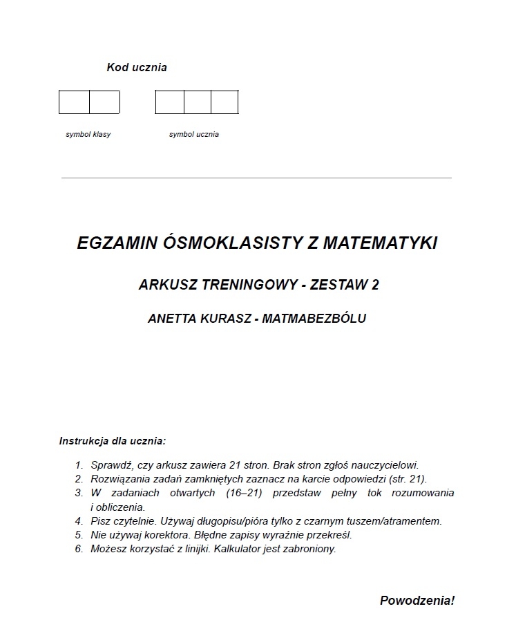 Egzamin ósmoklasisty z matematyki. Arkusz treningowy - zestaw 2.