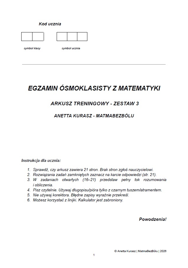 Pełny arkusz egzaminacyjny: 21 stron materiału gotowego do wydruku.