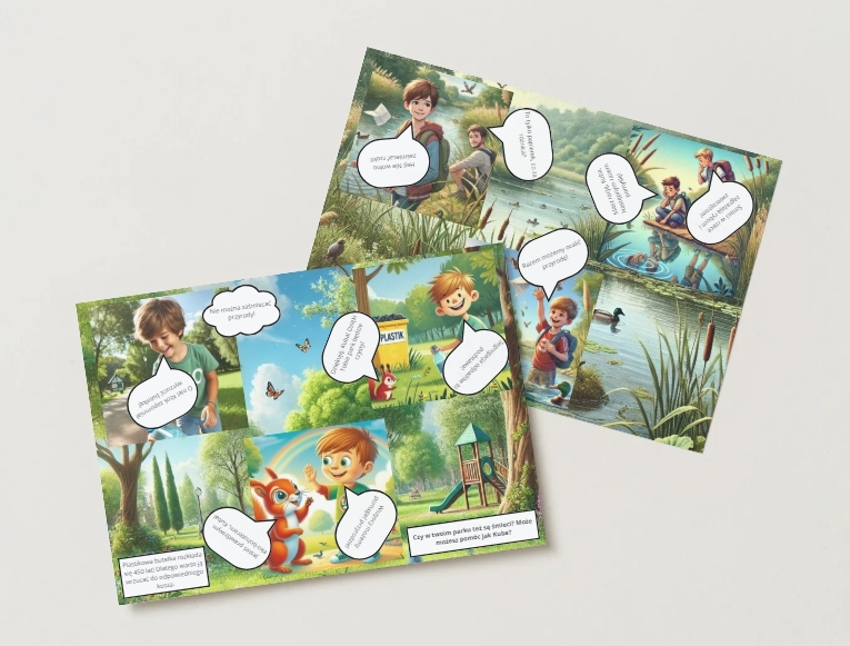 ✅ Zwierzątka jako pomocnicy ekologii – wiewiórka i rybka pomagają zrozumieć świat natury.