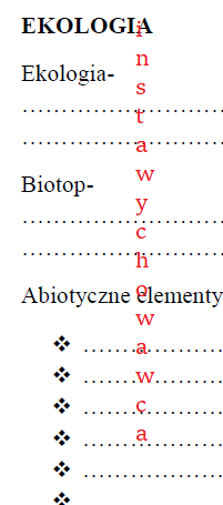 Karta pracy zawiera 8 zadań, w których należy podać definicję np. biotopu, ekosystemu bądź wymienić elementy np. biocenozy.
